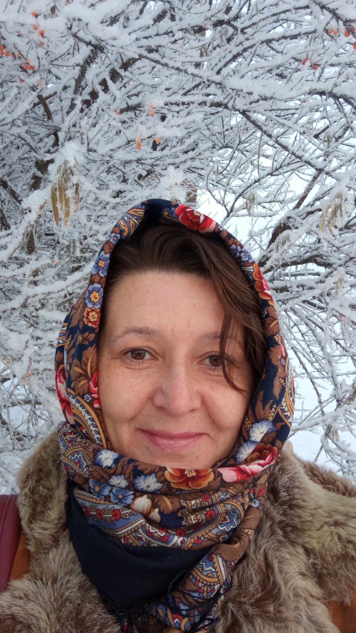 Казна (Ольга), добро пожаловать! Осваивайтесь с фотографиями, будет очень приятно на вас смотреть. Хорошо, что вы фото всех своих платков разместили каждый в новое сообщение - они легко пойдут в архив, спасибо вам за его пополнение. Только название и колорит не забывайте писать. Шафран у вас какого колорита? Не вижу - бахрома одноцветная, или цветная? (я тоже недавно купила такой же Шафран, эффектный платок, давно собиралась). И очень понравился на вас Розовый сад. Вы так хорошо его намотали - лохматенько и небрежно, люблю, когда так наматывают платки с шерстяной бахромой.