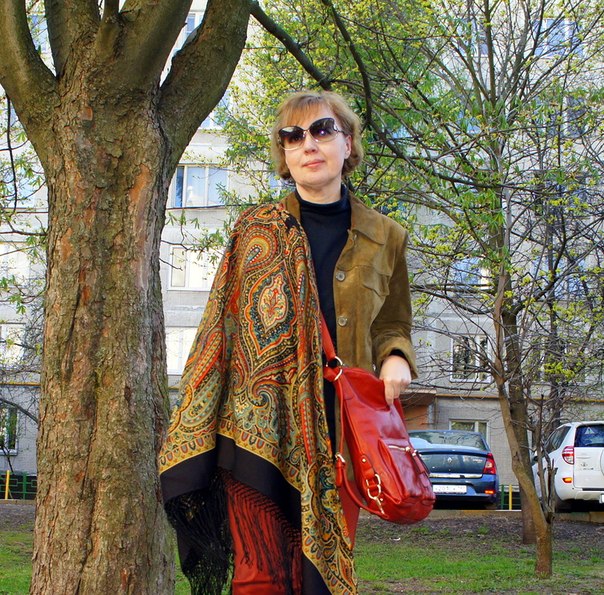 ... а я тут послушала совет из "Модного приговора")))... достала давно забытую замшевую курточку и попробовала приспособить ее к некоторым шалям... результат удивил, цвет оказался очень дружественным почти ко всем моим шальным боХатствам... вот некоторые варианты... :0: