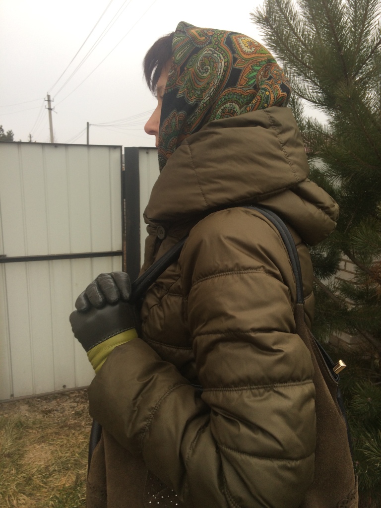 Думала, что образ состоявшийся, но посмотрела на фото и поняла, что надо доработать. Сумку надо синюю , а перчатки найти в тон каймы , малинового будет достаточно ( при таком способе ношения шали). А то бахрома слишком много цвета выдает. Туркменку хоть как подстригай, бахрома все равно густая.