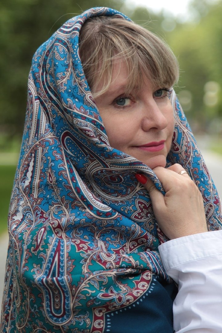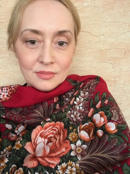 В магазине очень понравился атласный платок Белый танец, цвет достоверно не передался на фото, но всё равно красивый))