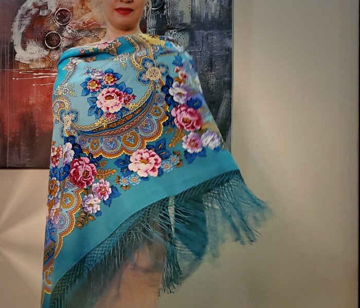 ! То ли ты так шали умеешь выбирать, то ли они все тебе идут, а наверное, и то, и другое! Более нарядная и яркая Юлия, более строгий Цвет граната - всё красиво и всё к месту. А платье какое роскошное Леночка сшила! Не только красавица, но и рукодельница