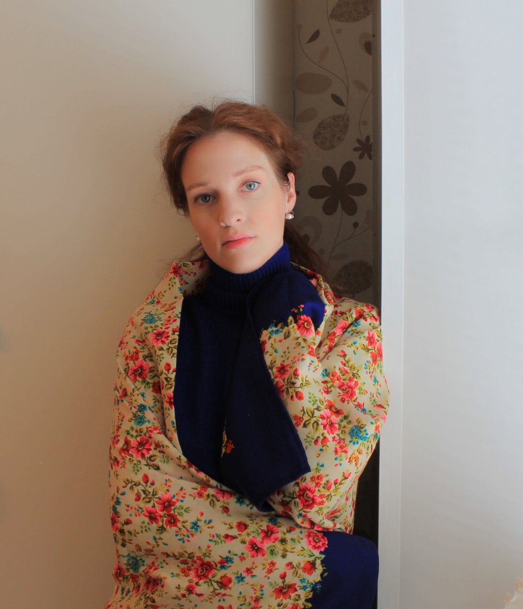 Именинница как ваше продолжение. Особенно на первом портрете, вторящая тону кожи, цветами перекликающаяся с цветом глаз и губной помадой, а веточками, листвой и узорами ластясь под тон волос.