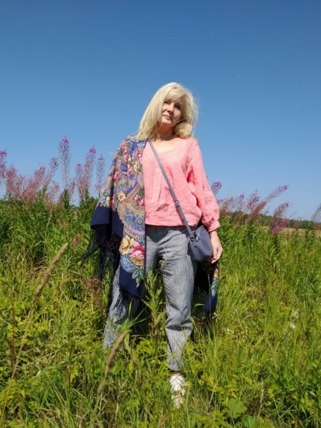 Joy ! Люба! Очень идет Вам эта шаль--прекрасны! Сколько воздуха и здоровья в этих соснах!