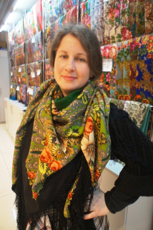 На встрече примерялся платок Весенние грезы, как нам показалось, колорита, отличного от имеющегося в базе 25-го.