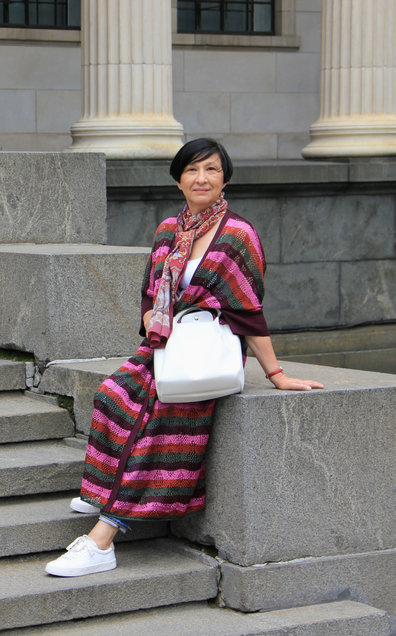 Ношу, пока лето и погода соответствующая, шелка. Кстати, шарфы очень удобны в носке, если в петлю просунуть сначала один конец шарфа, а второй конец продеть в обратную сторону.