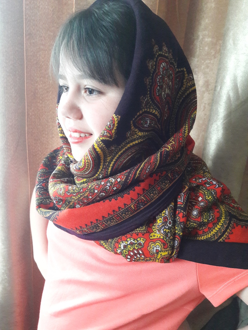 Пряха, "Турецкий 7" - красивый орнаментальный платочек, Вашей внучке очень идет. ^% ^% ^%