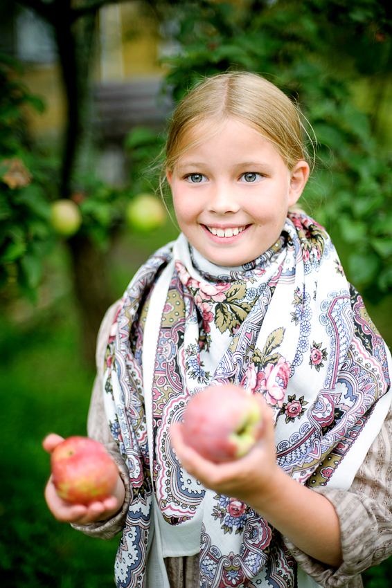И своими яблочками..