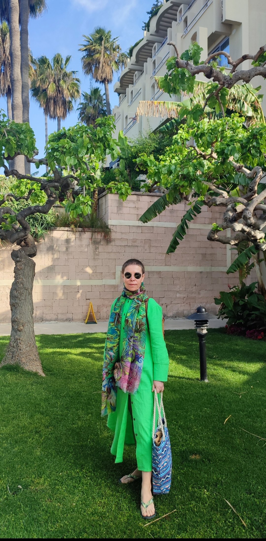 Думаю, что этот Павловопосадский можно будет носить, скрутив поплотнее, не на голове. Реально, платок неоднозначный. Зато вкус мужа понятен)
