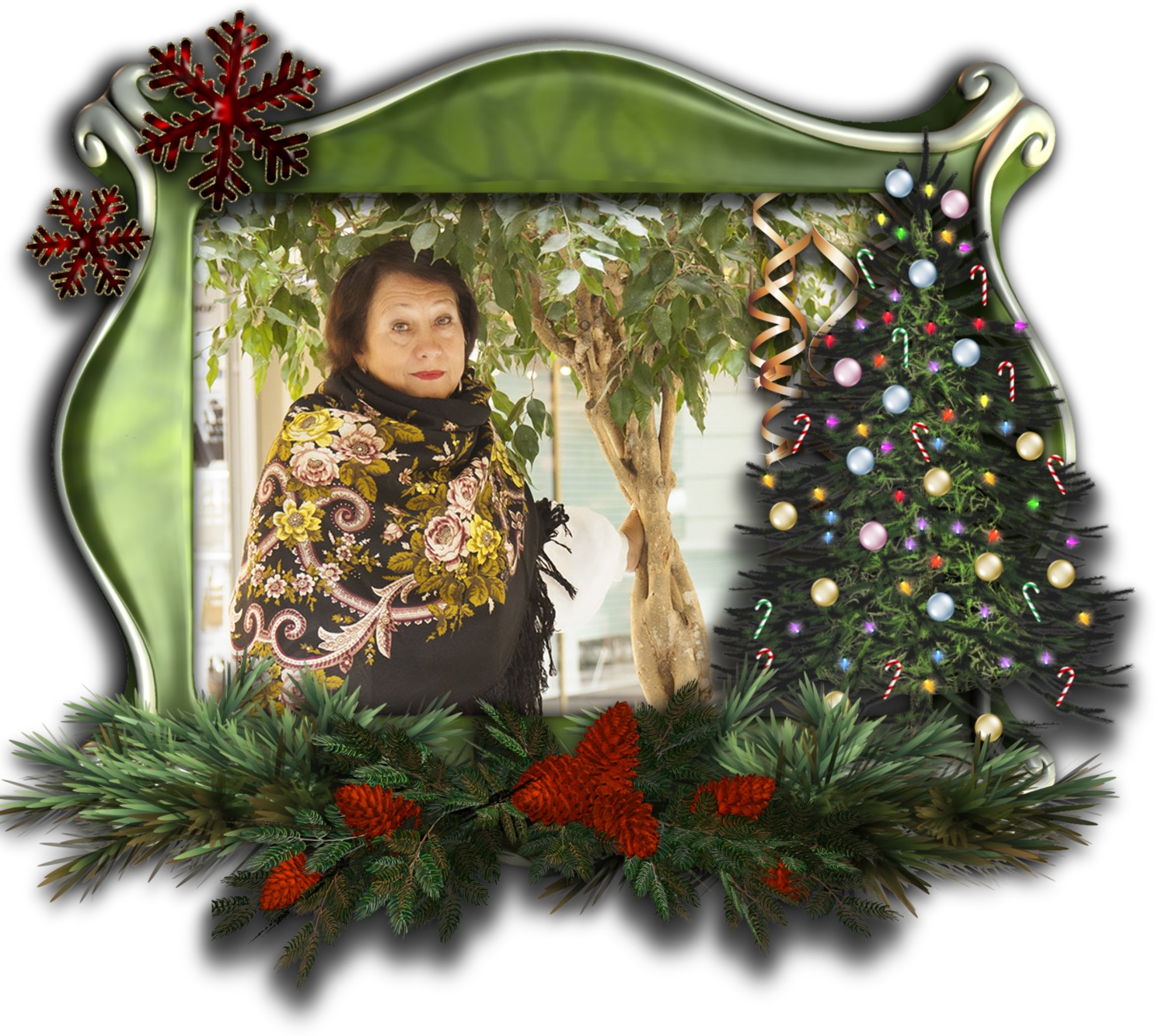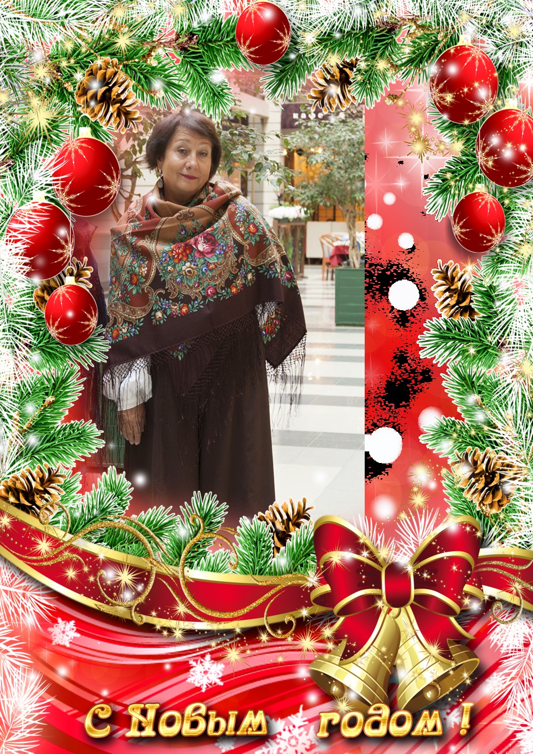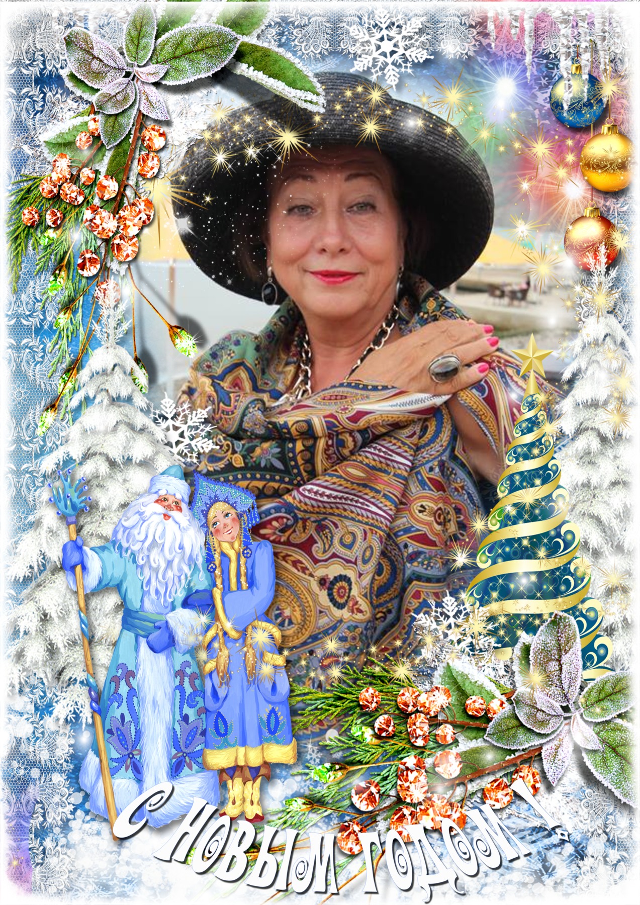 Татьяна Золушка! Шаль космическая, серьги фееричные, платье изумительное, елка нарядная,открытка волшебная и такая красивая и счастливая вы!