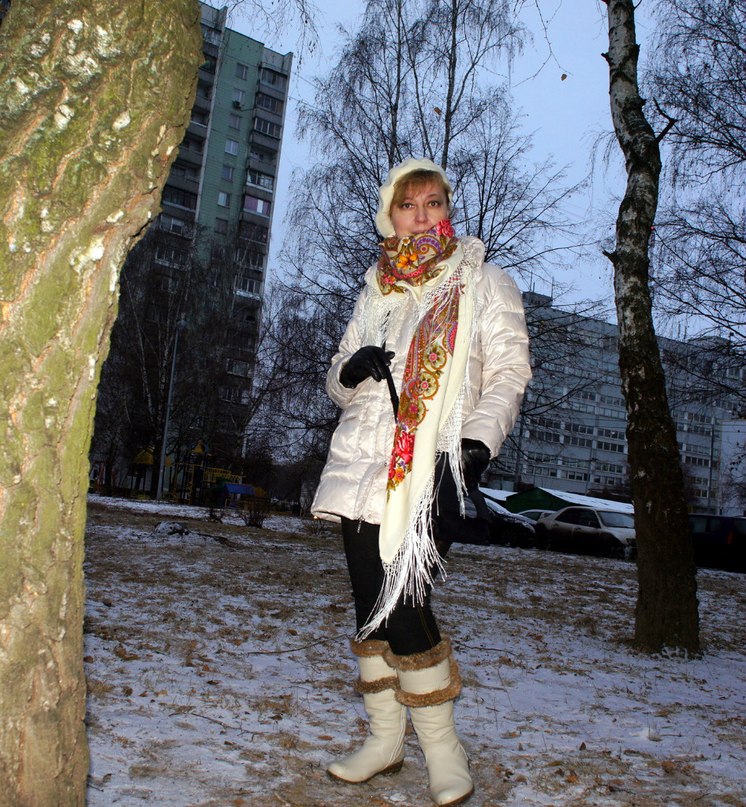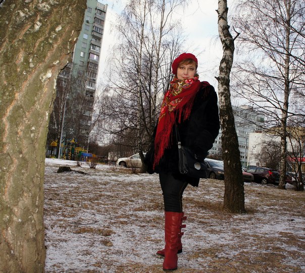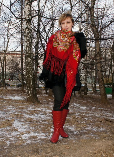 ... в предновогоднем ажиотаже тоже купила себе несколько желанных шалей, которые все откладывала на "потом")))... но ..."все побежали, и я побежал"))) :lol: сегодня удалось сделать фото в красной красавице...Василиса-5 ::
