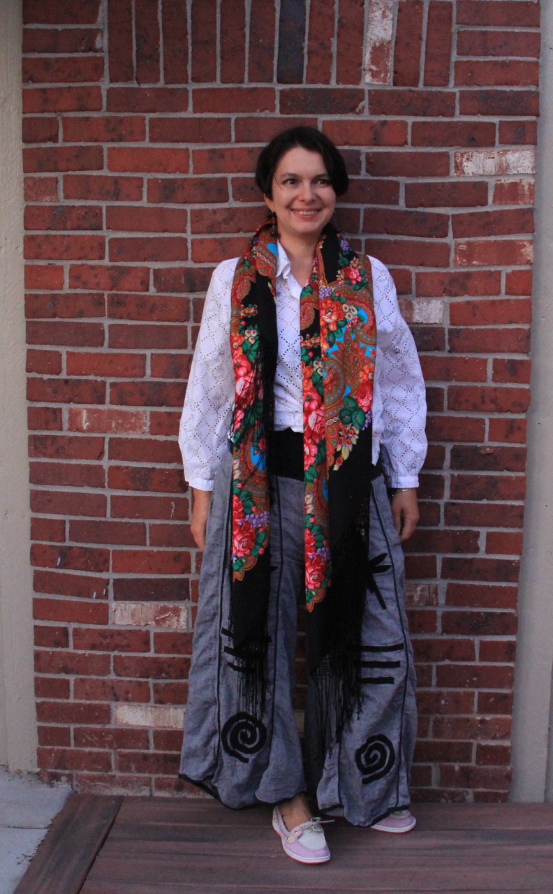 Демонстрируем ношение платков и шалей.
