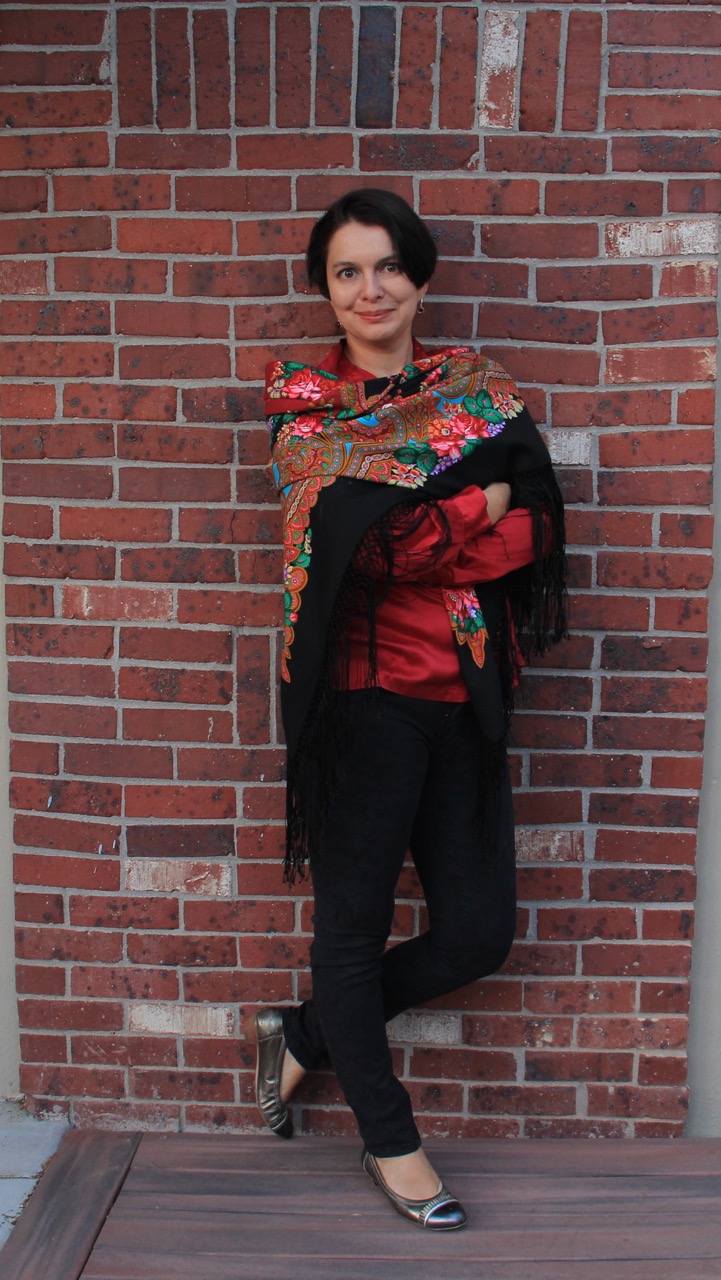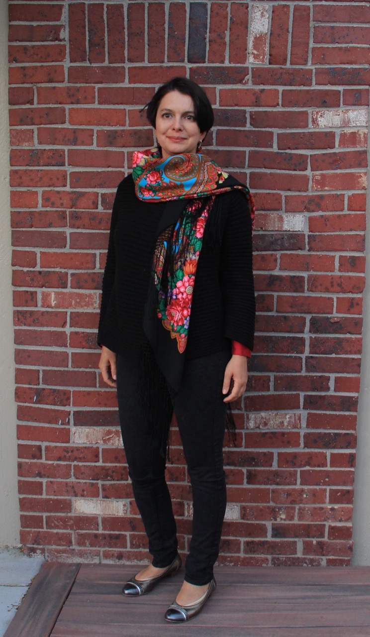 Девочки, спасибо, что отметили мой показ! Фотки уже месяц ждут - поэтому покажу еще пару вариантов с Лабзинским. (Кликните, чтобы почитать, что спрятано под катом)...Очень красивая новинка-старинка. И в базе пока мало. На мой взгляд тот самый вариант "и в пир, и в мир, и в добрые люди". Я обожаю рисунок "Ненаглядной", но ношу их редко, все же она более требовательна к обстановке что ли. А Лабзинский отлично вписывается в мой 95% неофициальный стиль. Конечно с бирюзой мне кажется он наиболее выигрышно играет. Но также отлично вписывается в черно/бело/красную гамму. Желтого я не ношу, и с холодной базой желтый на шали не выбивается. Надо будет еще с фиолетово-бирюзовым принтом попробовать, чтобы фиалки на шали поддержать;)