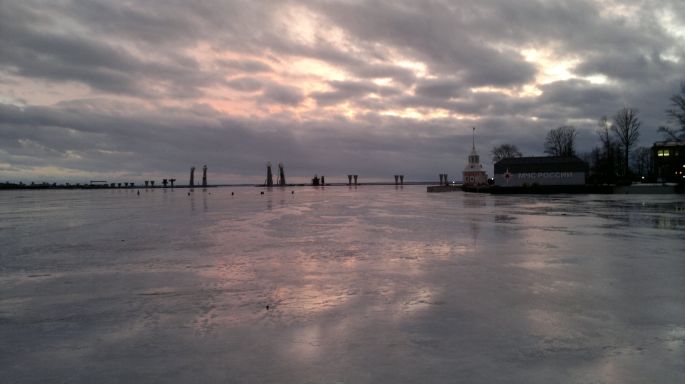 А вот сегодняшние сумерки на заливе. Шкиперский проток. Тот же оттенок.