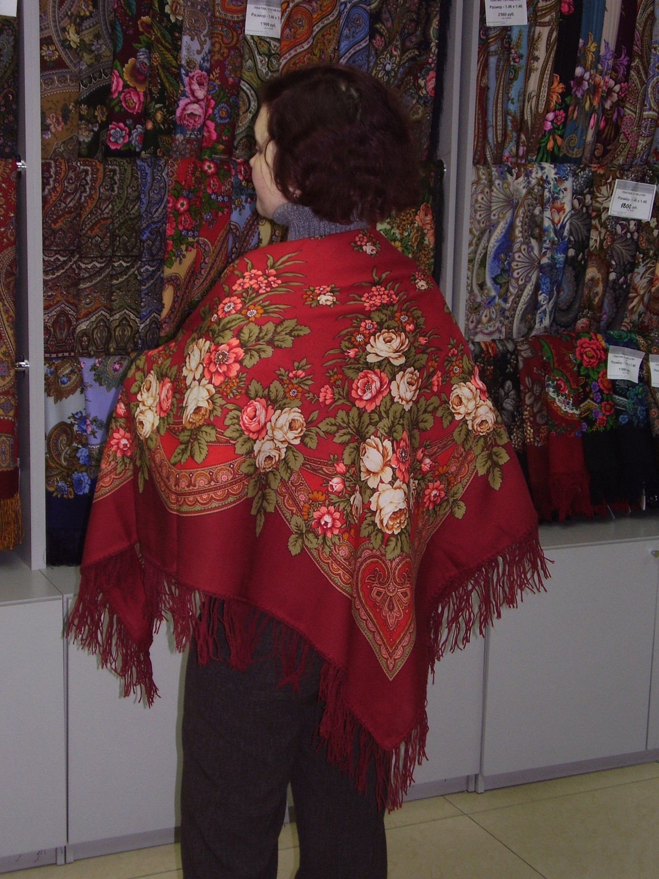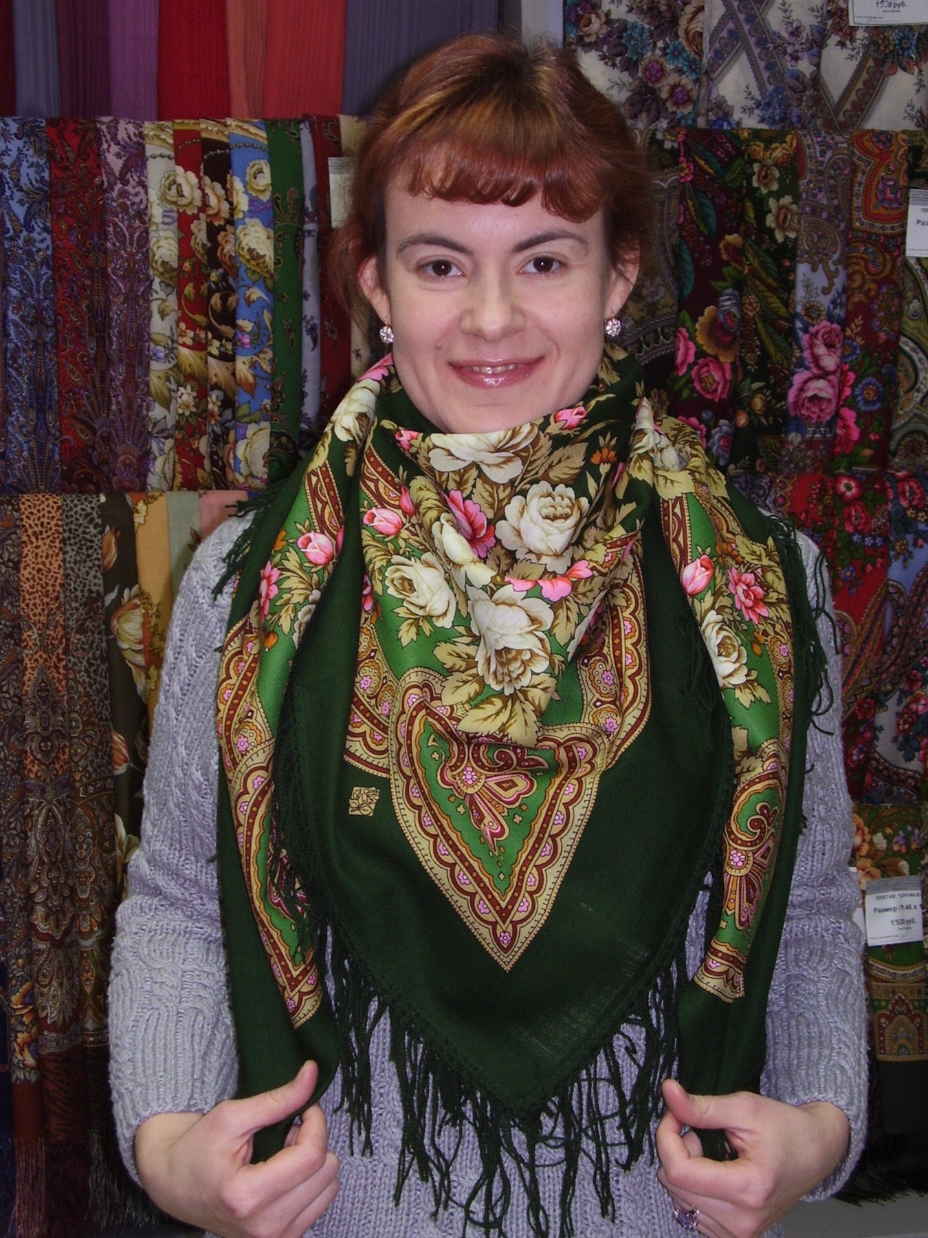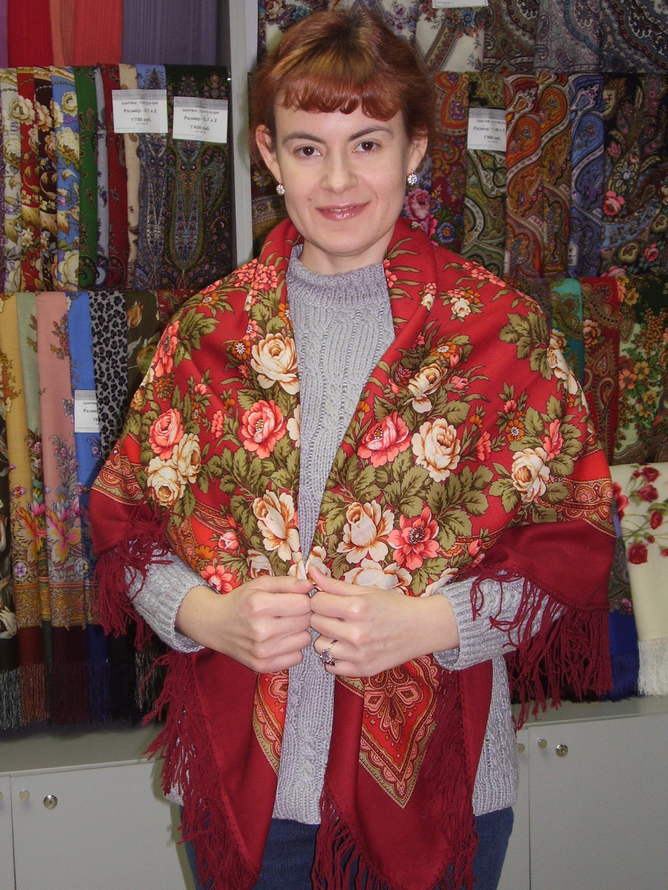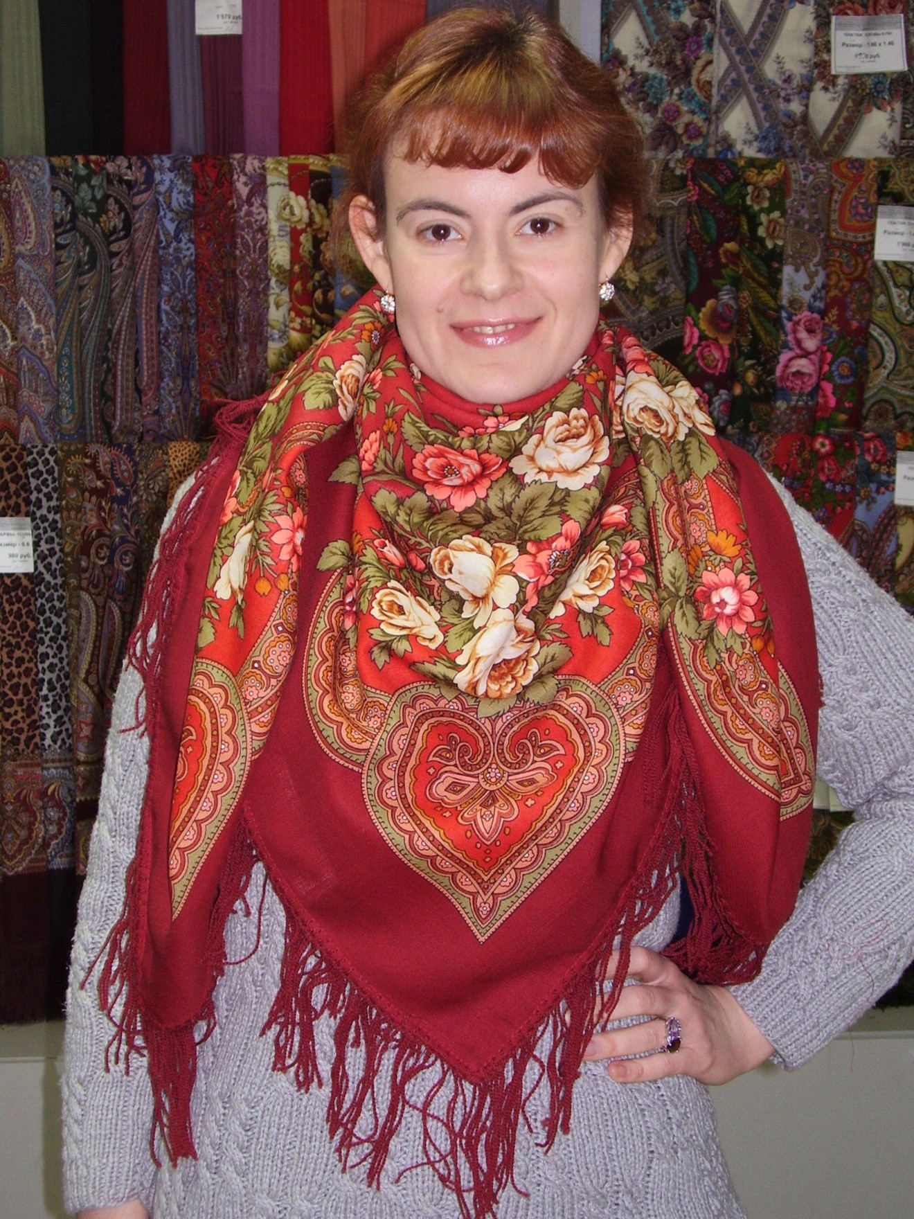 Грушенька 1019-6, Ирина Дадонова Вспышка сделал платок более красным, на самом деле он скорее темно-красный.