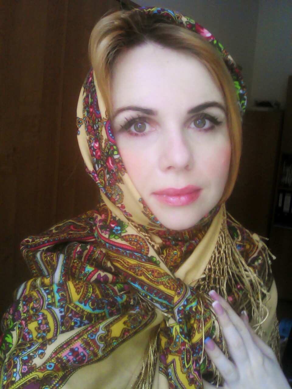 Дама червей - не, платка не вижу, вижу только глаза огромные, в которых утонуть можно. Какая Вы красавица ^% Ну а если серьезно - Вам очень идет эта золотая Волшебница, поздравляю! Я тоже ее очень люблю.