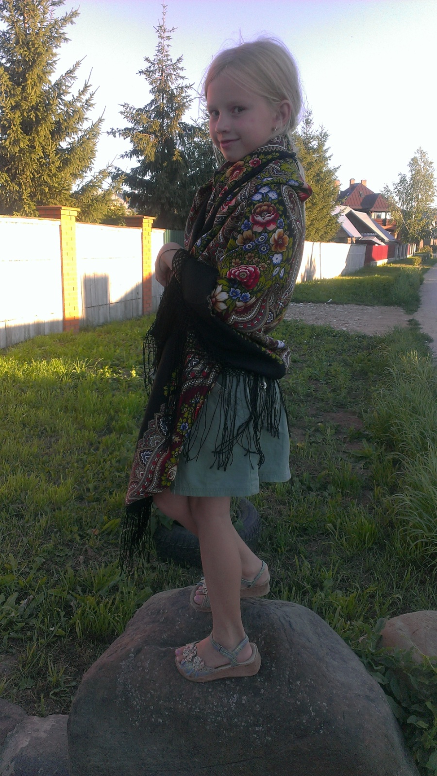Только я собираюсь накинуть прекрасную шаль Лето в Павлове, как Марина сразу о ней вспоминает и у меня её забирает.