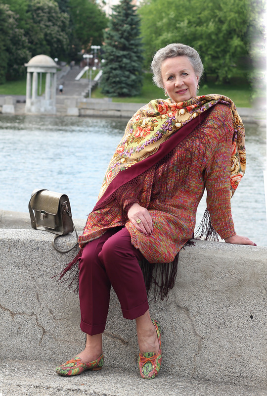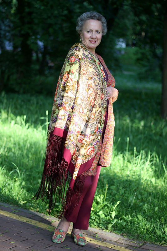 Катерина Соколова, понравился зелёный "Поле Цветов" с камуфляжными штаниками, с серым платьем модного кроя для меня пример того, как не платок добавил платью, а платье сделало незамысловатый и простенький платок ярким и праздничным аксессуаром. С валяным шёлком тоже - интересно.
