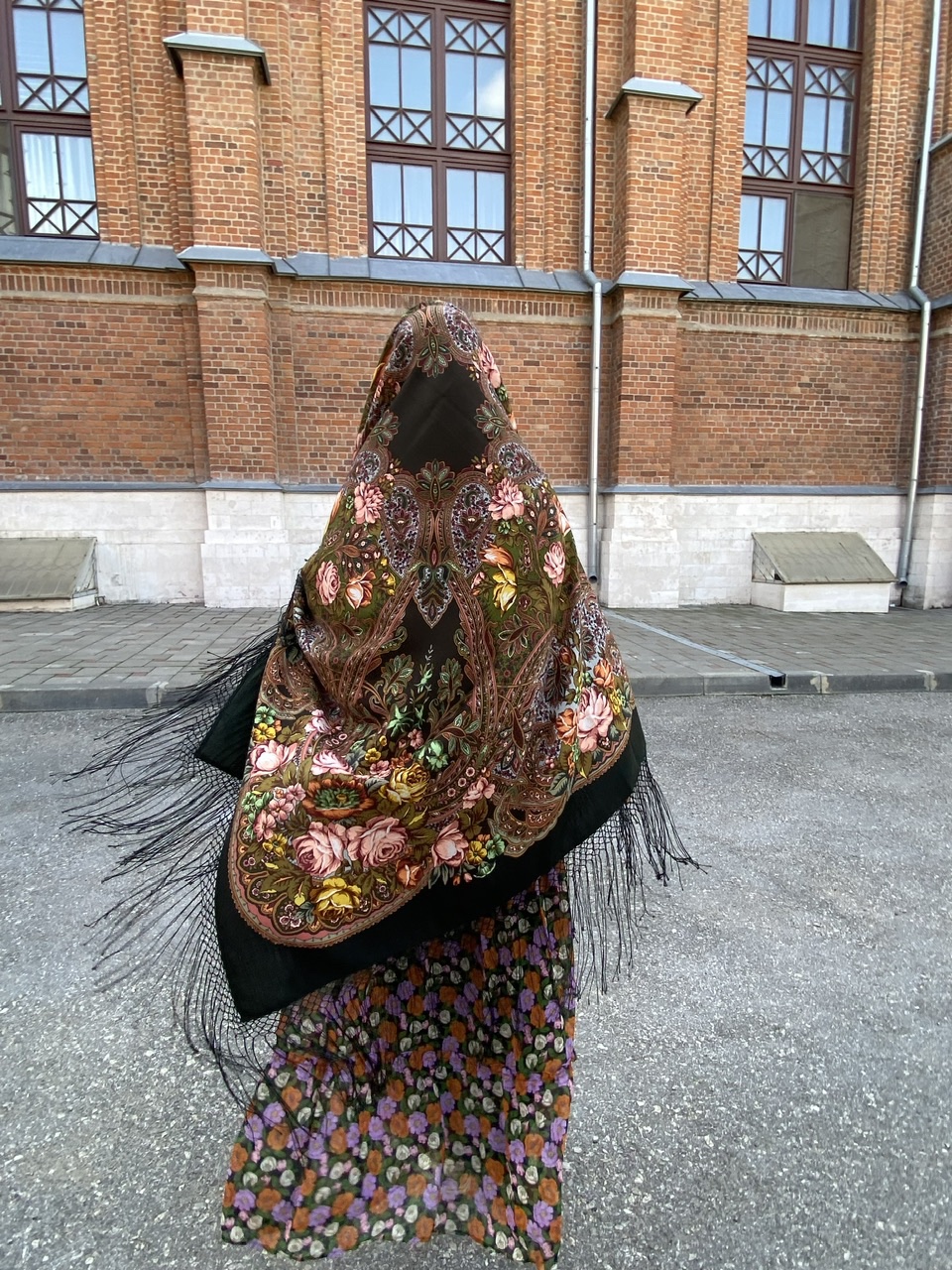 У меня зелёные Покрова "старинный", ещё с шерстяной бахромой клетками. На перевыпуске может чуть-чуть кайма потемнее. Зато цветы идеально.