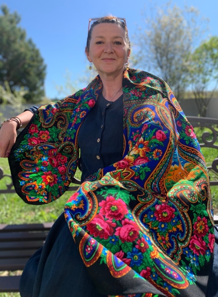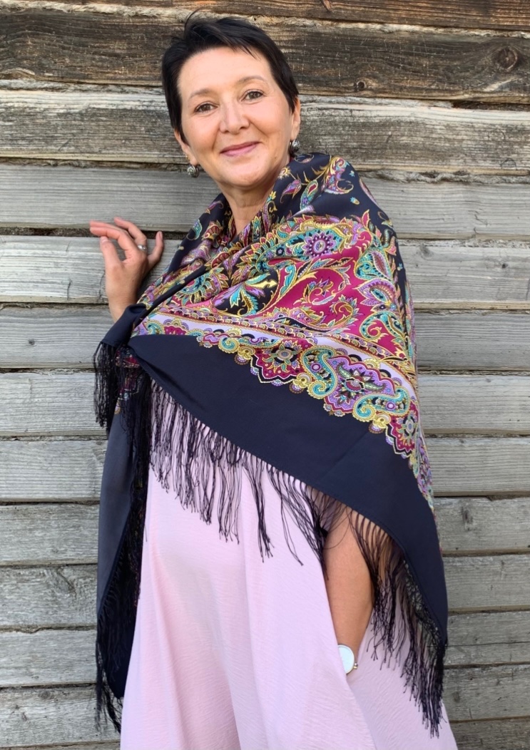 ! Такой веселый, яркий, задорный, с юмором получился платок. Мне кажется, совершенно в твоем характере