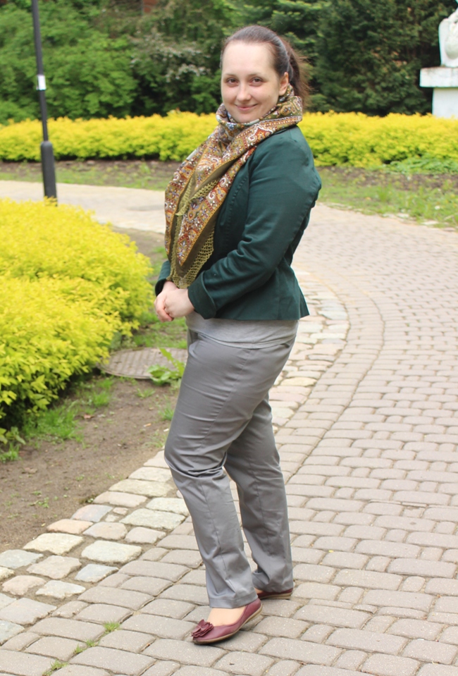 crazywool...симпатично получилось, с серыми брючками хорошо и туфли в "тему"... , и выглядите такой счастливой, чувствуется, что платочек нравится!