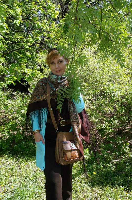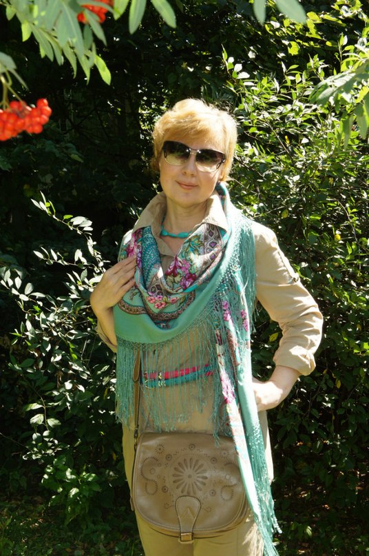 шоколадно -бирюзовый ношу круглый год, а вот нежно-припыленный Княжеский-3 для меня только весенне-летняя шаль
