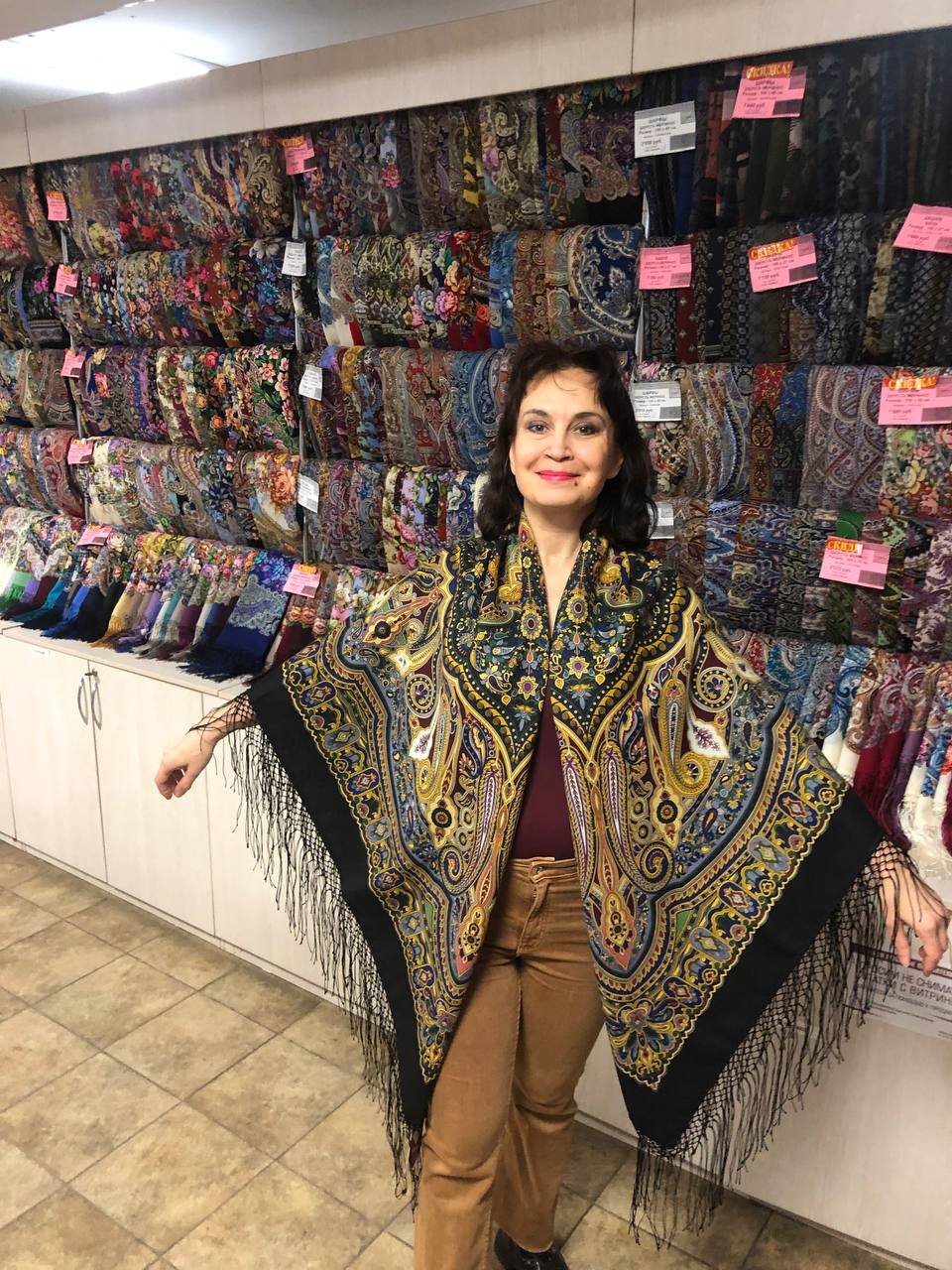 Быстренькие примерки, восторг от красоты шалей смешивается с небольшим расстройством от нюансов печати.
