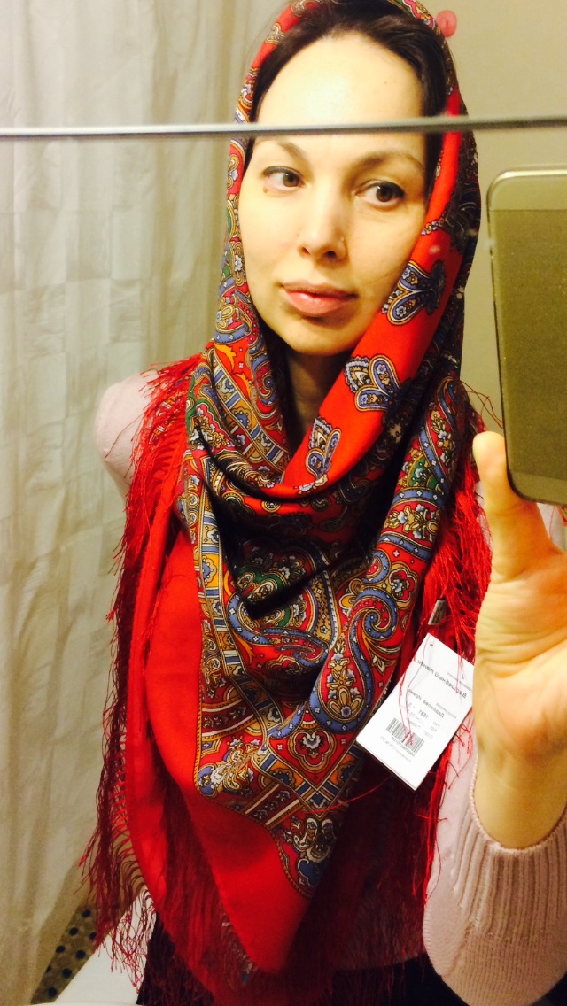 Ух ты! Мне очень-очень нравится этот алый платок на Вас! Благородно!!! И эффектно!!! ^% ^% ^%