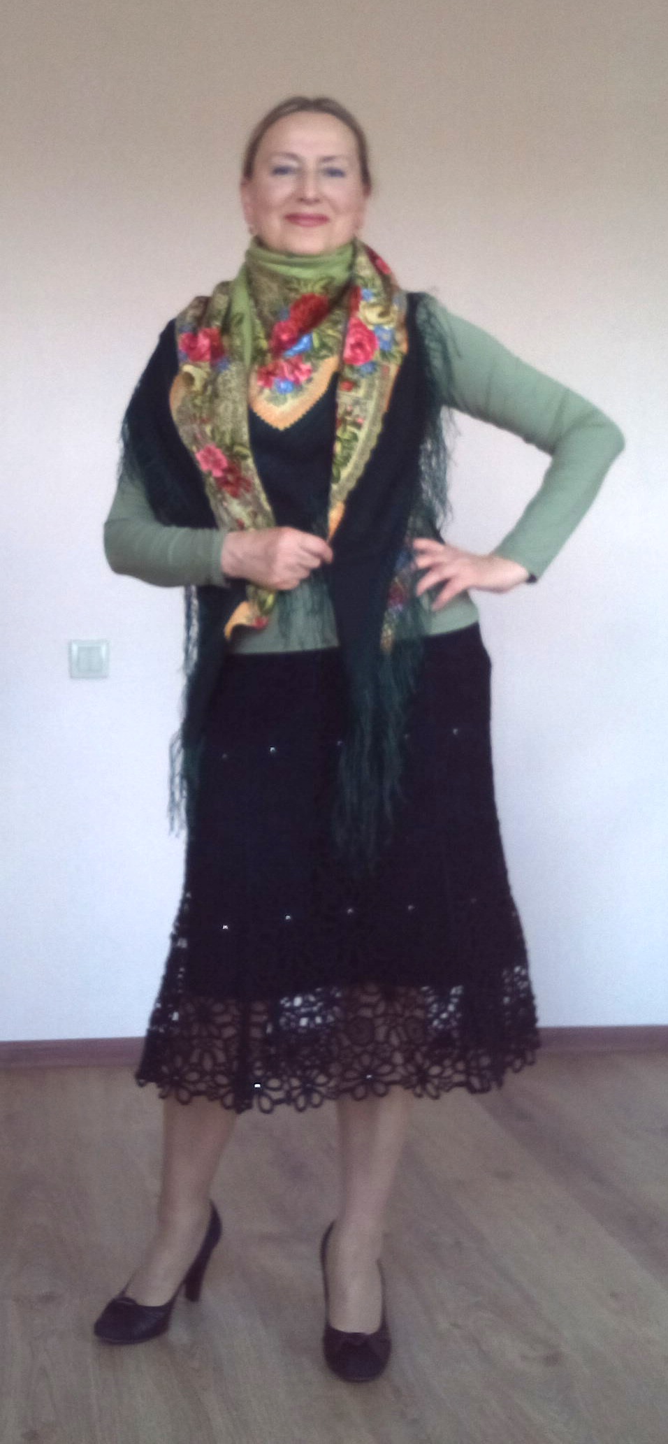 Демонстрируем ношение платков и шалей.