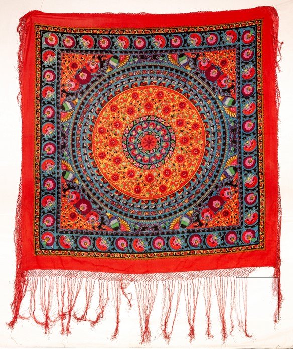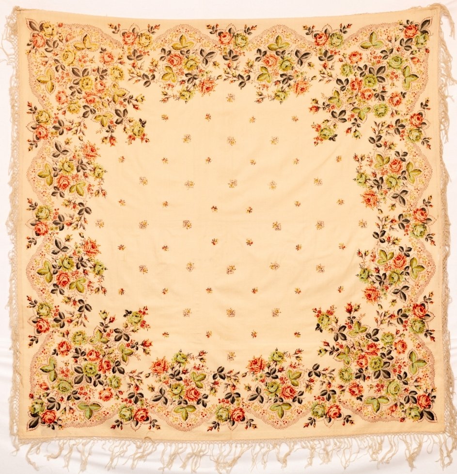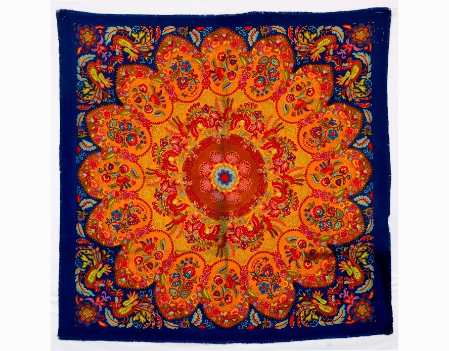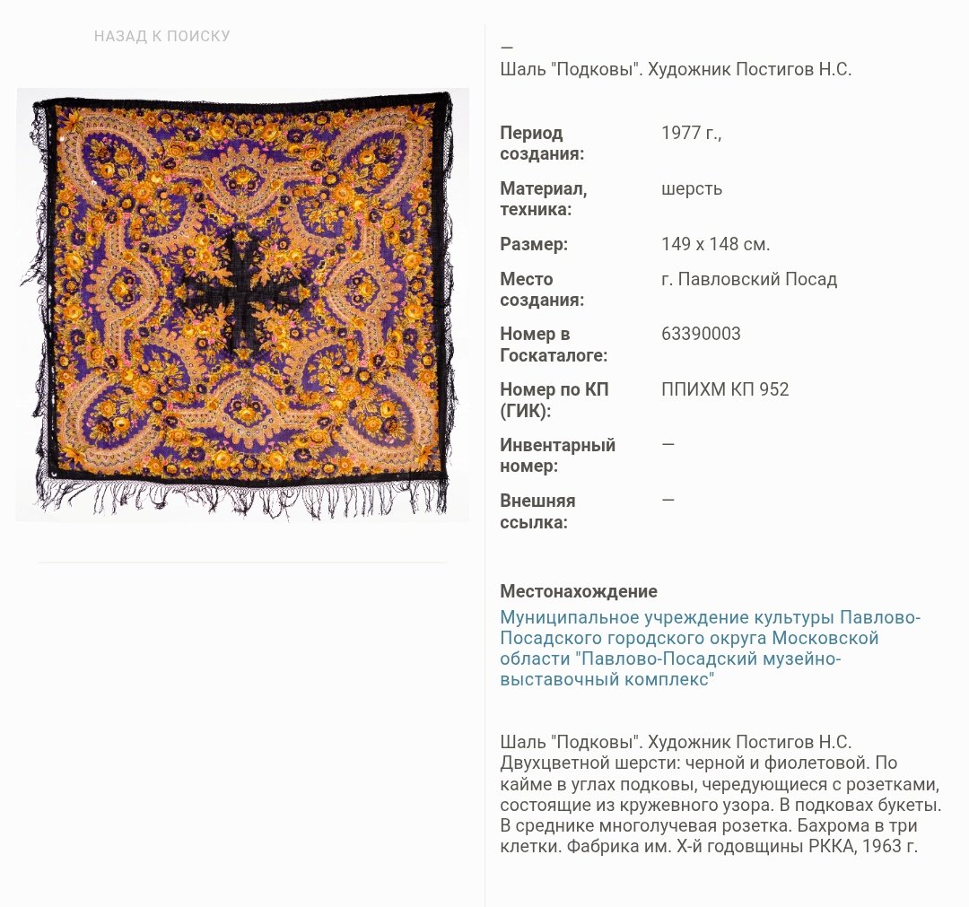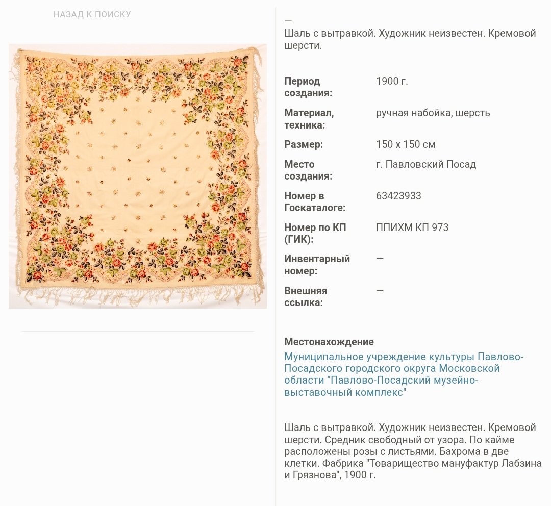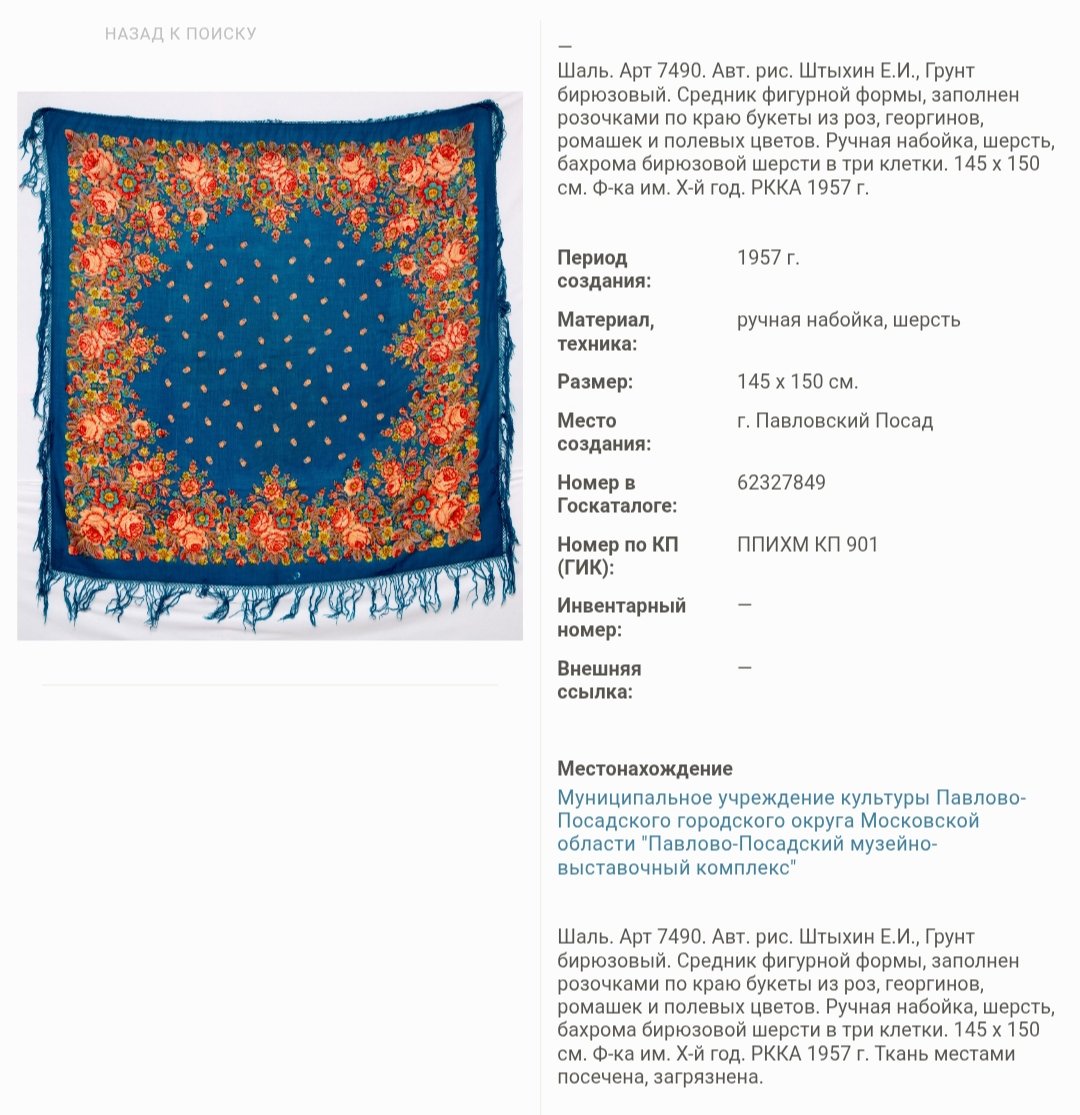 Судя по информации из Госкаталога, это шаль "Петухи" по рисунку Е.П. Регуновой.