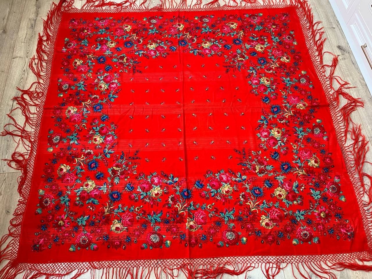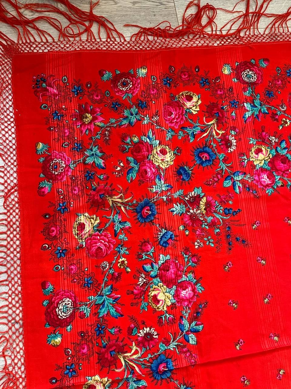 Описание продавца: Старинная шаль, XIX в, 150х150 см. Тонкая шерсть с просновками ручная набойка. Стоит клеймо «Фабрики Лабзина.».