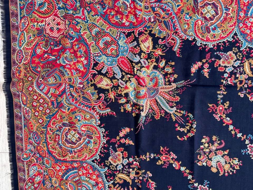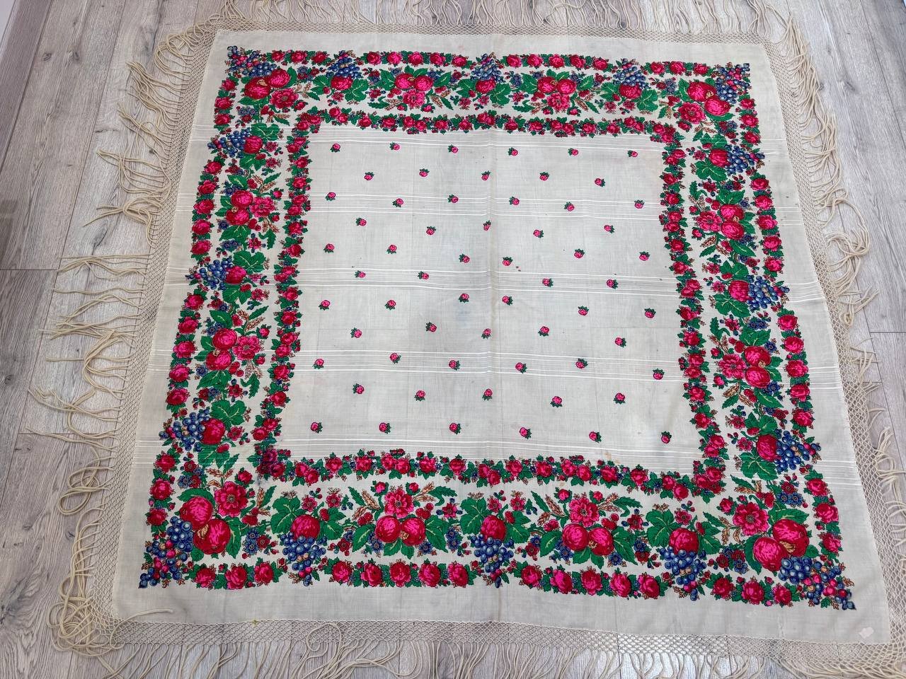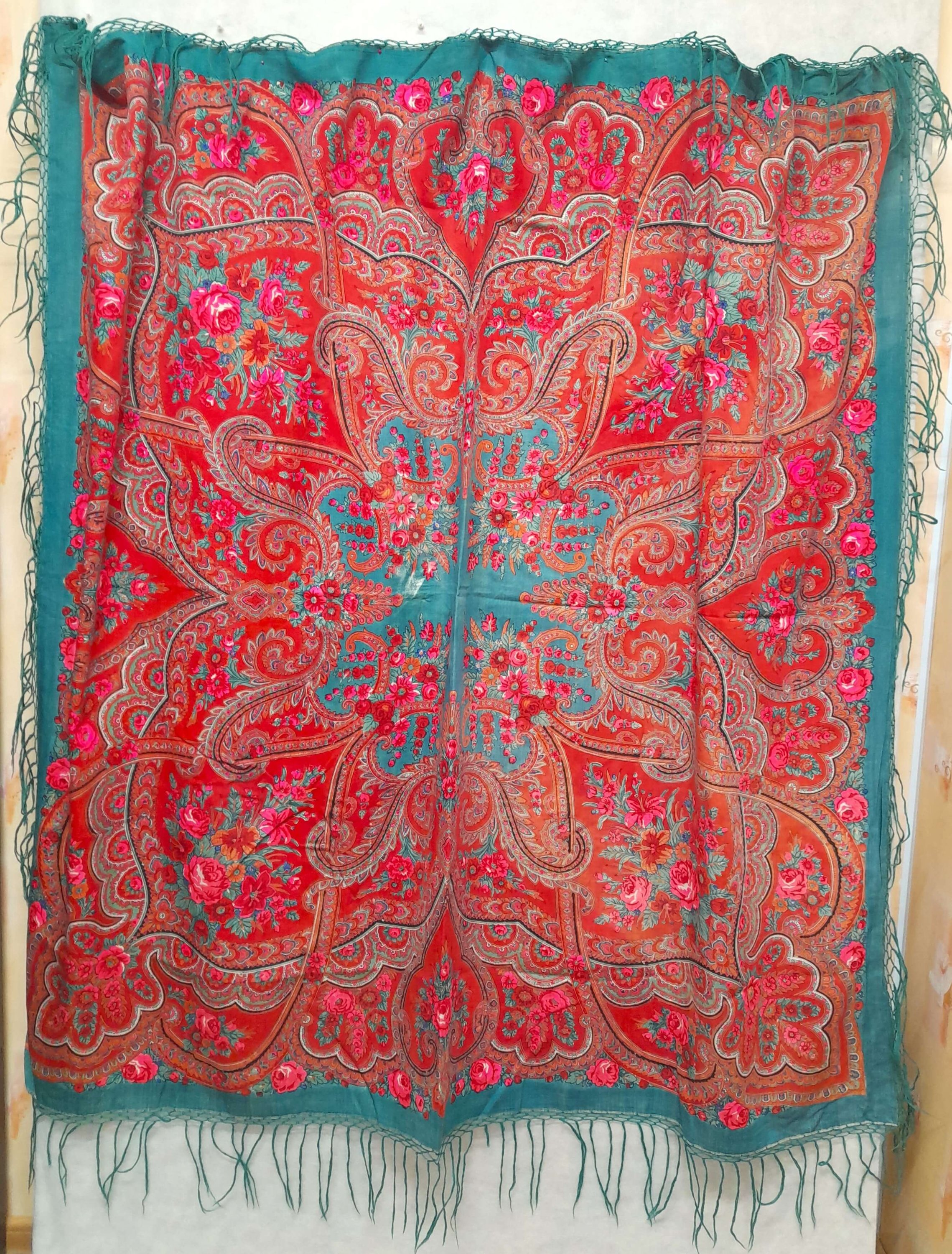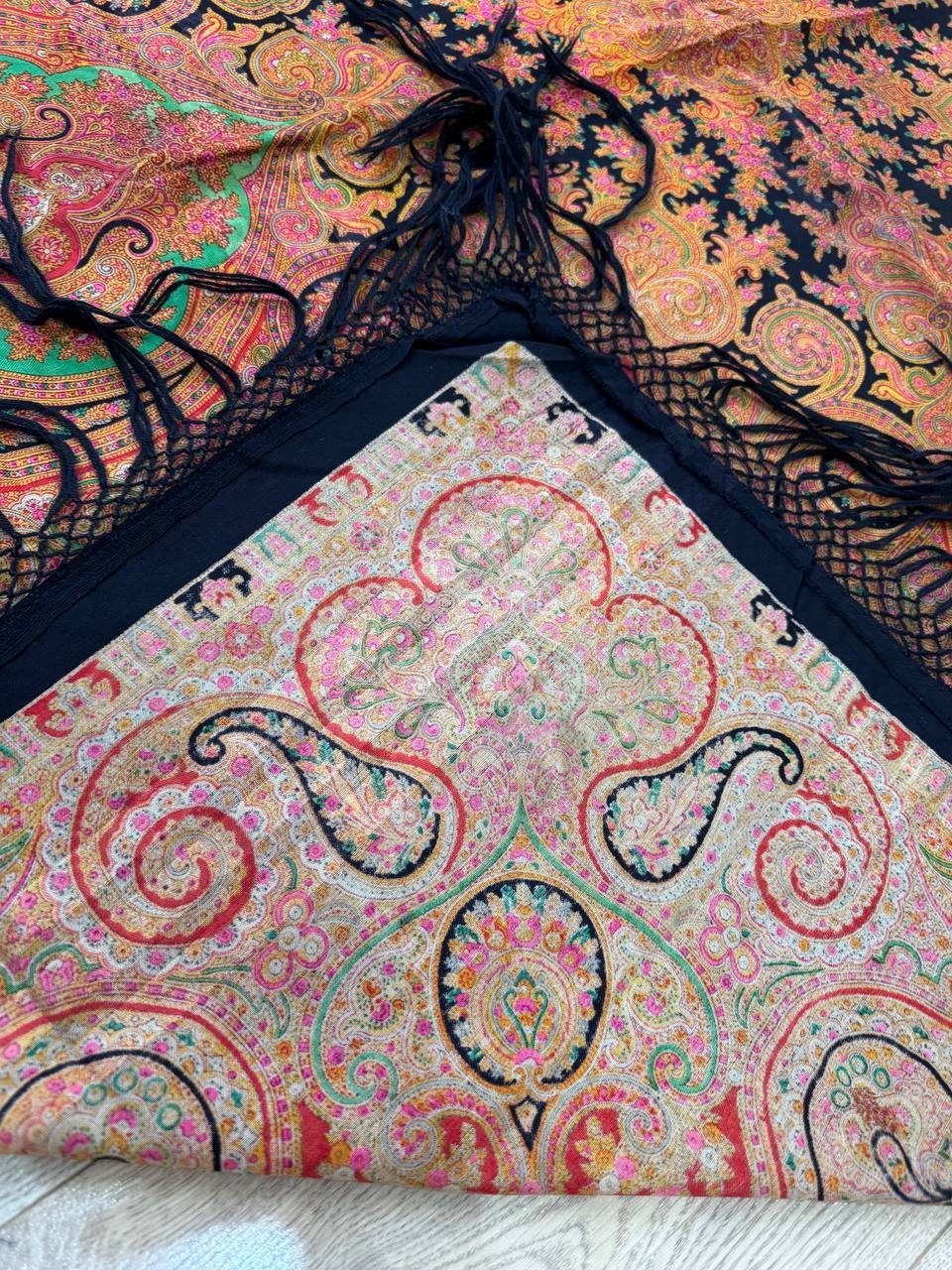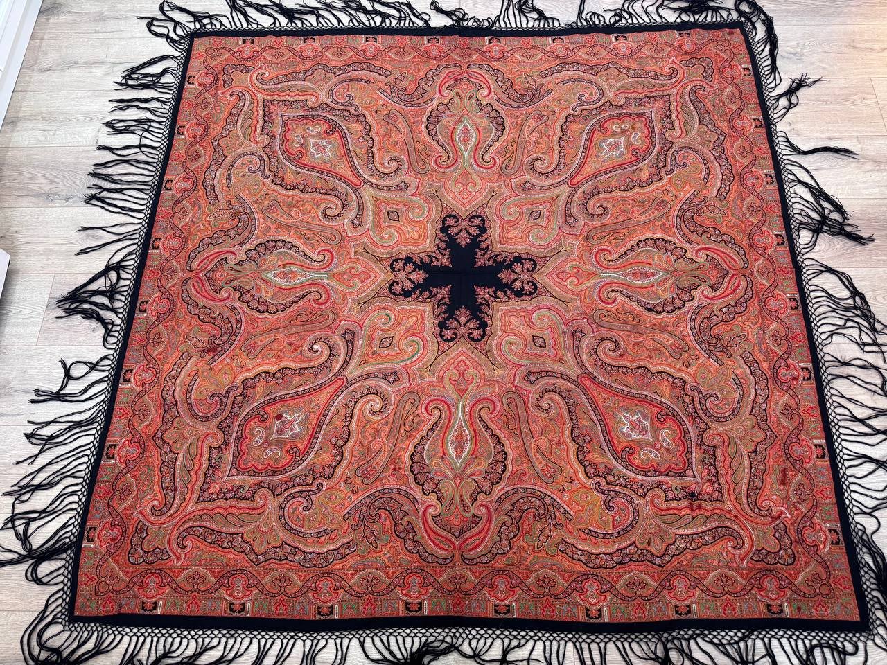 Описание продавца: Дореволюционная шаль с номерным штампом № 92 (конец XIX – начало XX вв.) Такие номера ставились на мануфактурах для учета партий или рисунков в каталогах, что является прямым подтверждением солидного возраста и фабричного происхождения изделия.