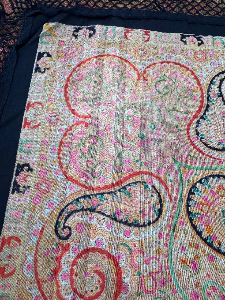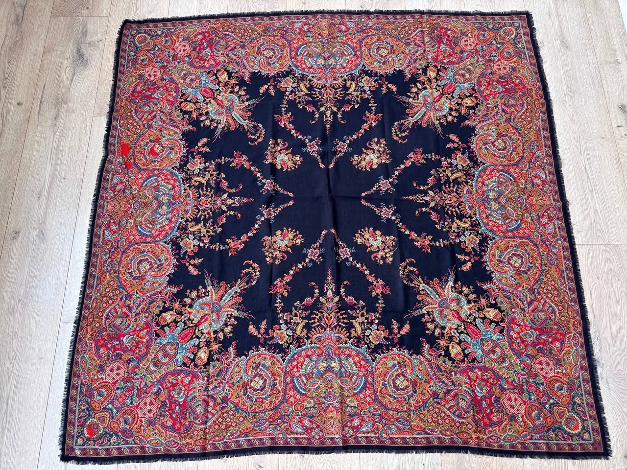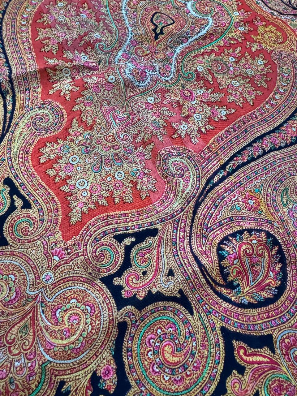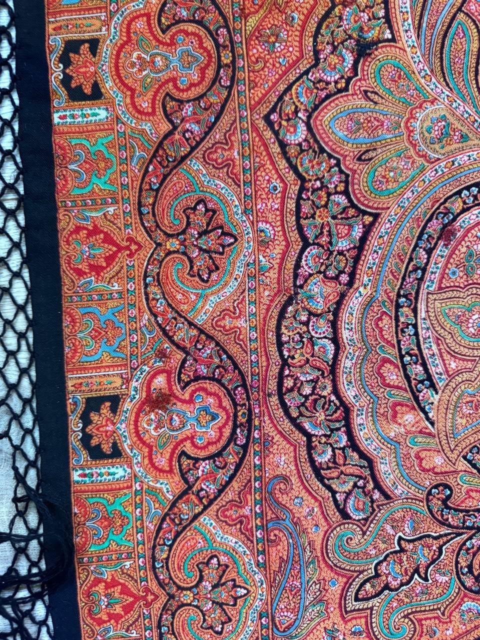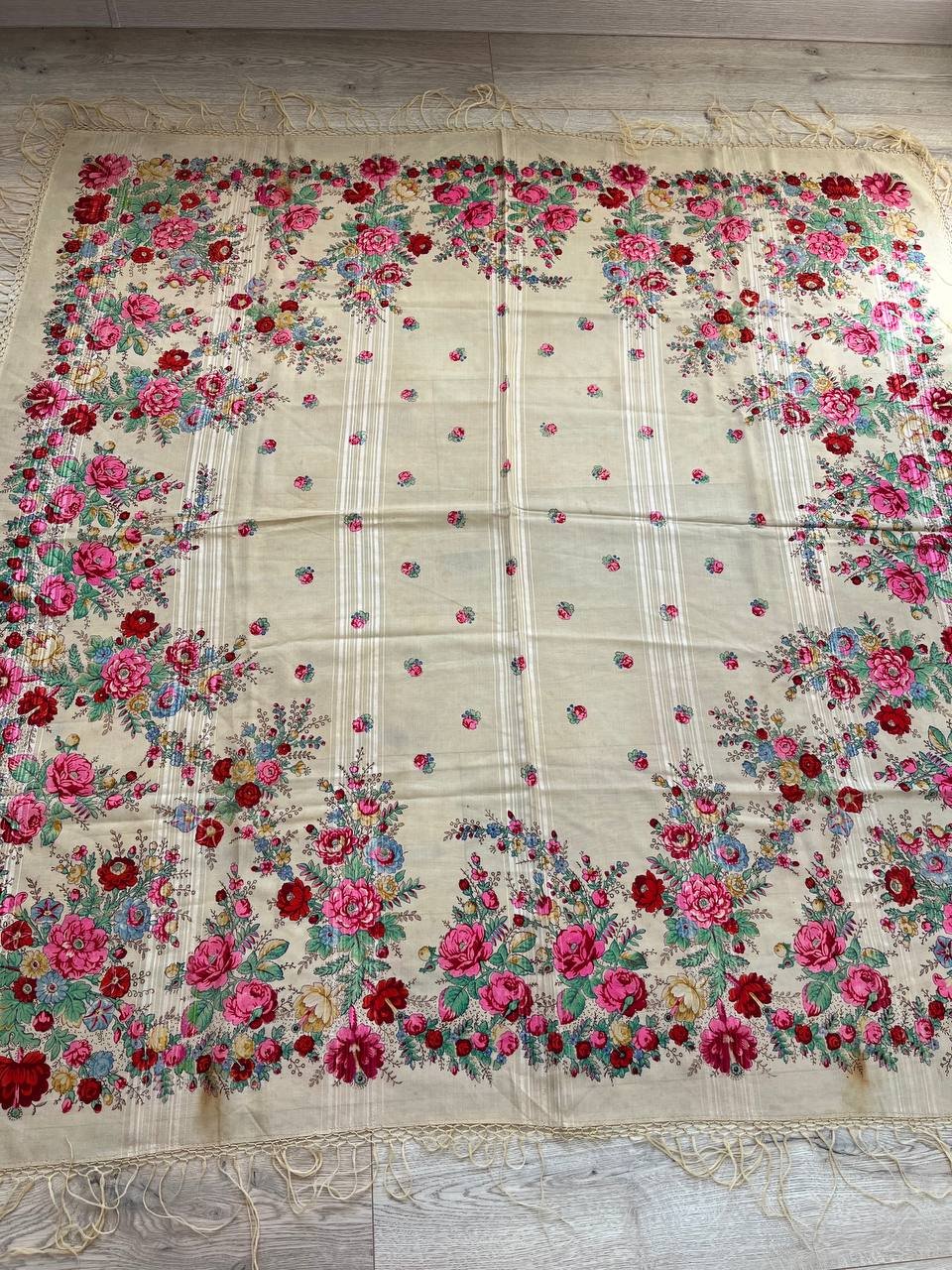 Описание продавца: Дореволюционная шаль с номерным штампом № 92 (конец XIX – начало XX вв.) Такие номера ставились на мануфактурах для учета партий или рисунков в каталогах, что является прямым подтверждением солидного возраста и фабричного происхождения изделия.