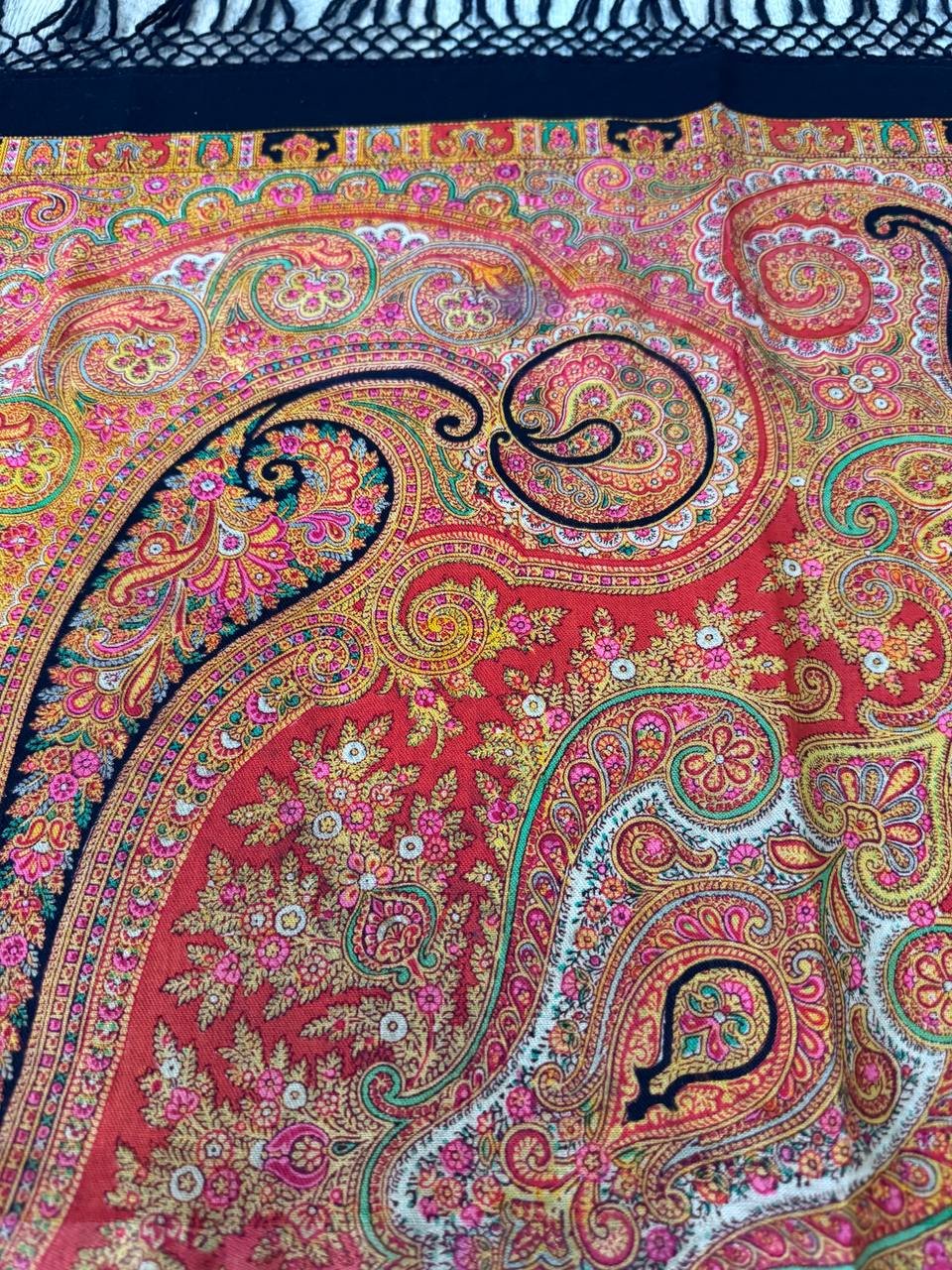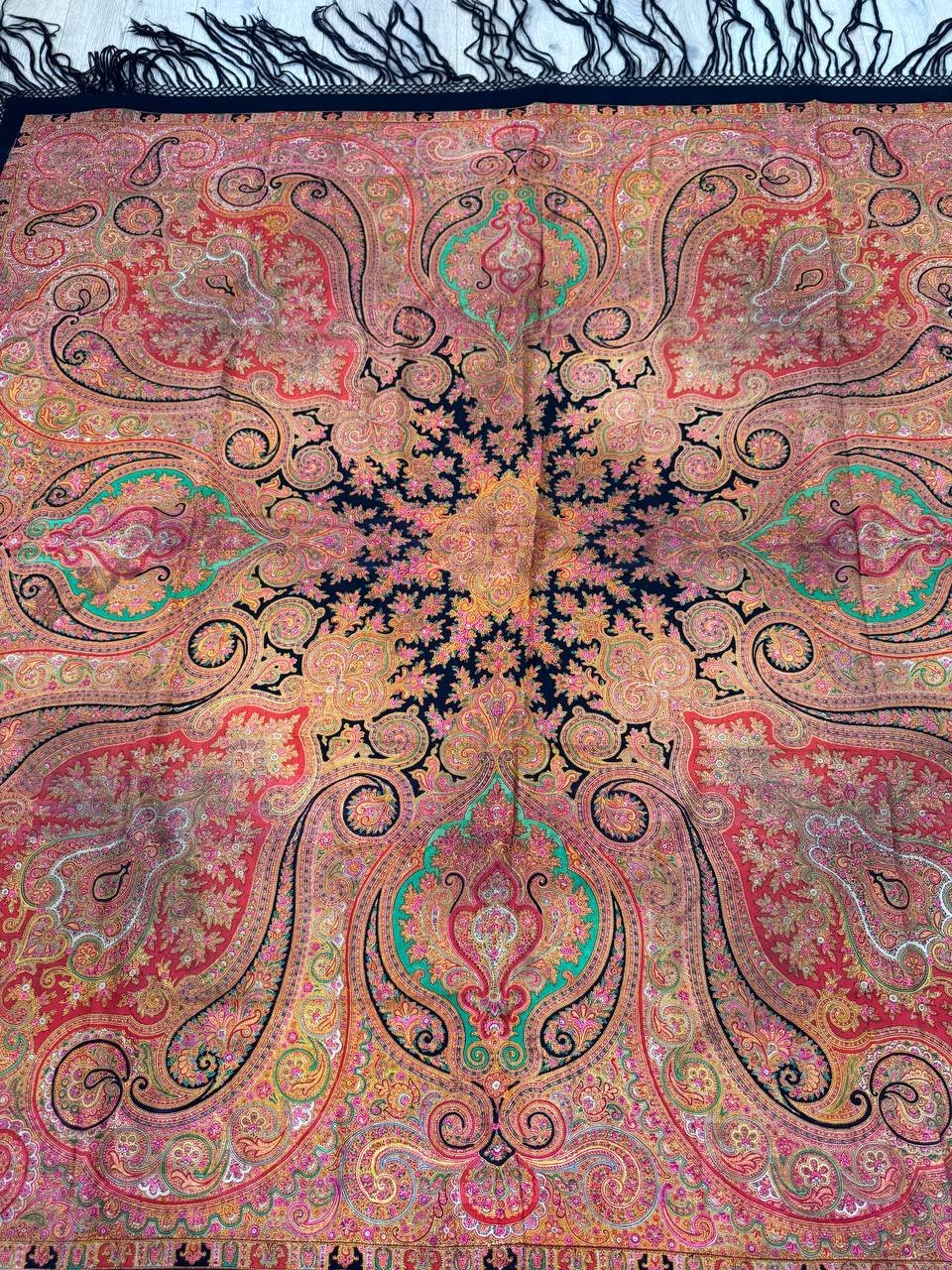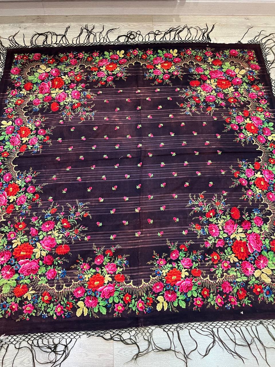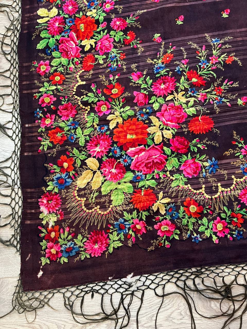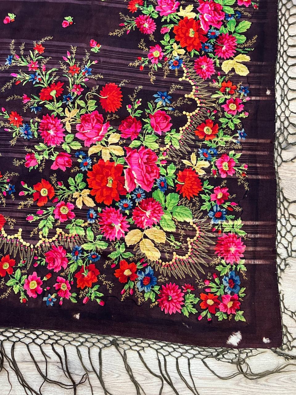 Описание продавца: Дореволюционная шаль с номерным штампом № 92 (конец XIX – начало XX вв.) Такие номера ставились на мануфактурах для учета партий или рисунков в каталогах, что является прямым подтверждением солидного возраста и фабричного происхождения изделия.