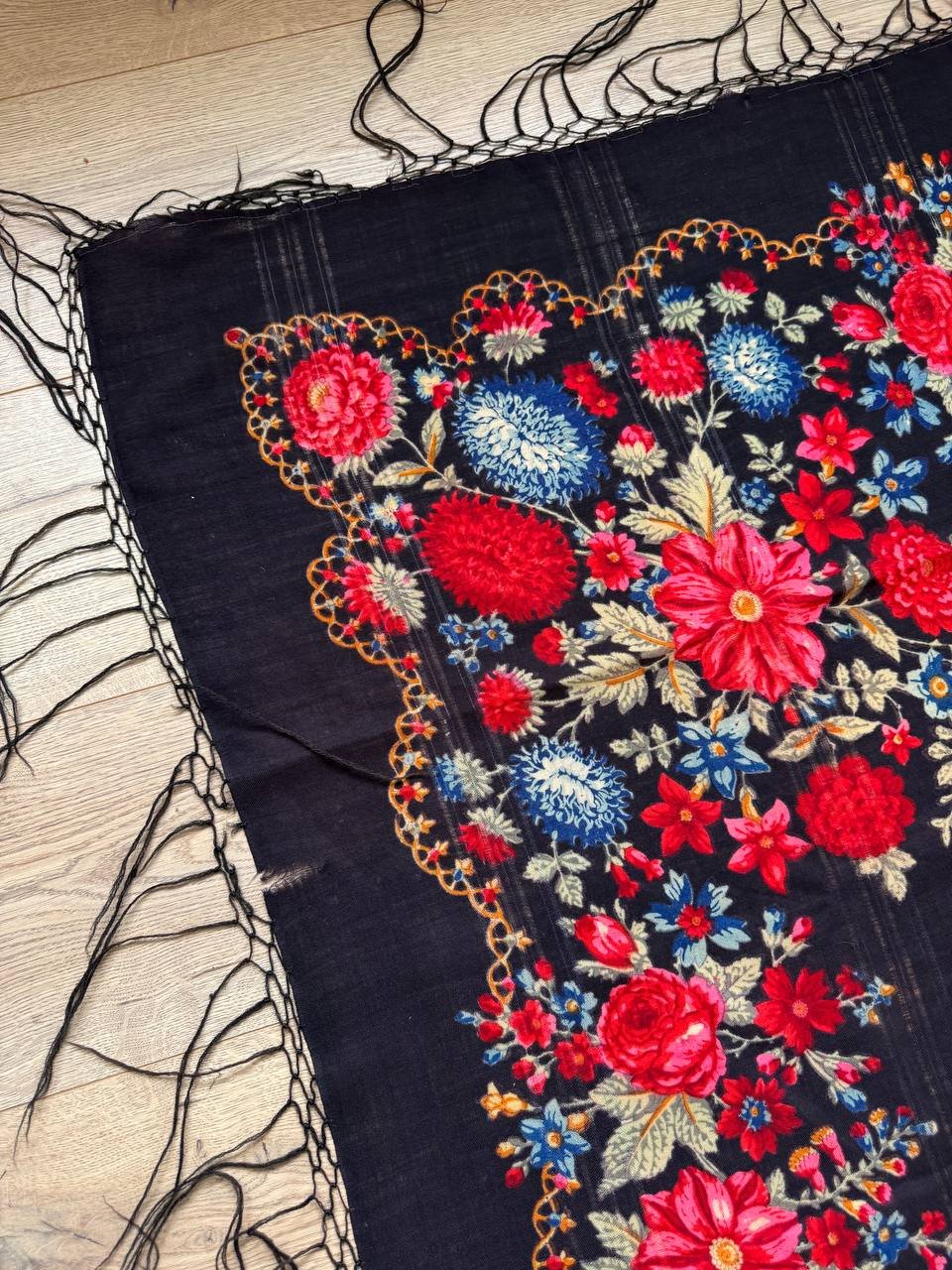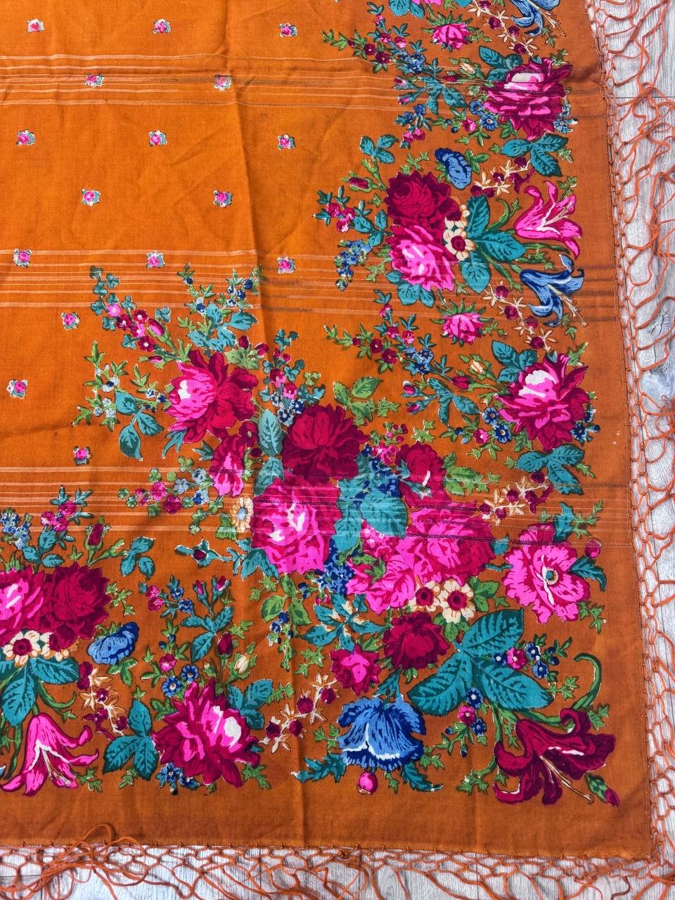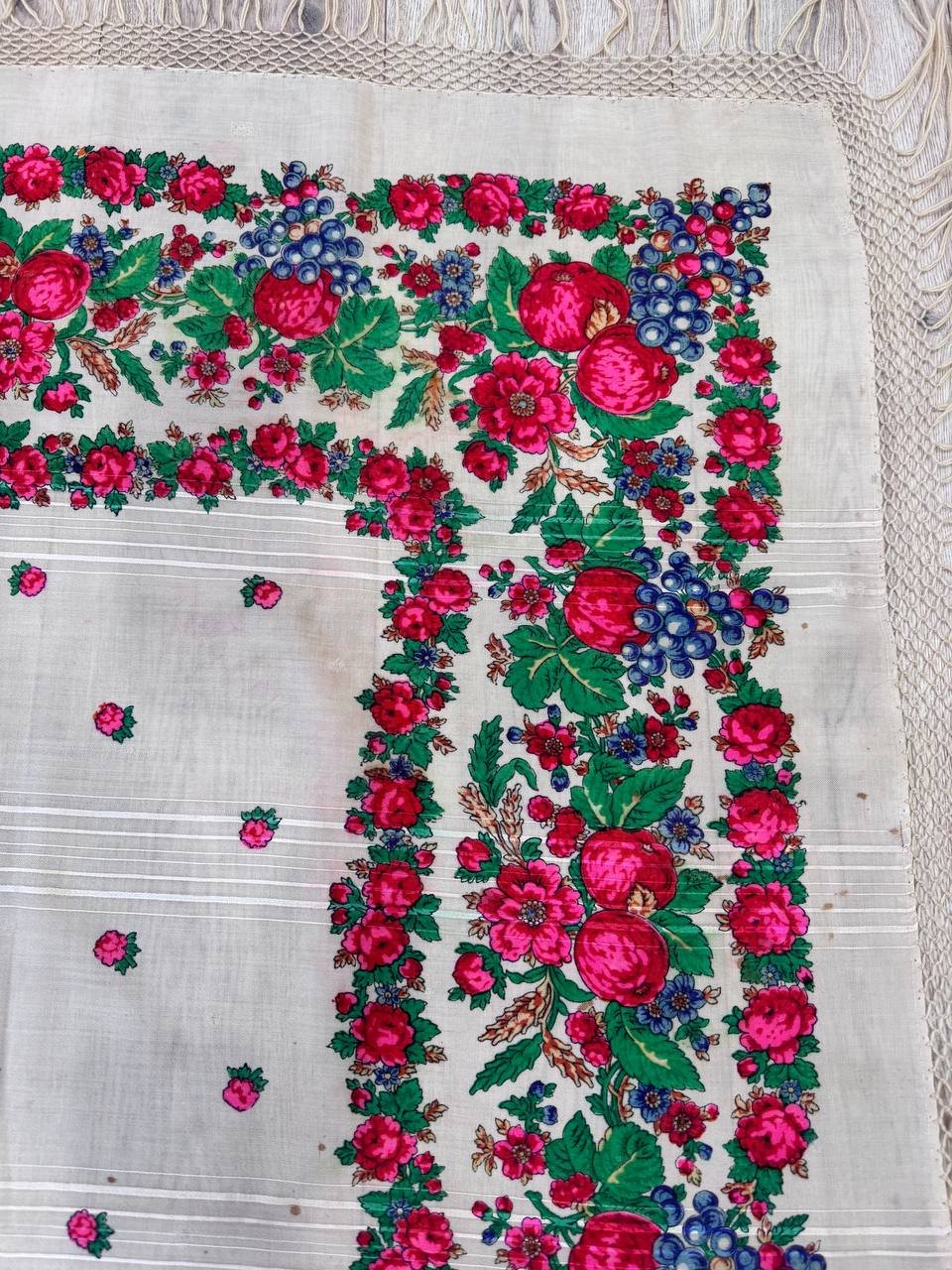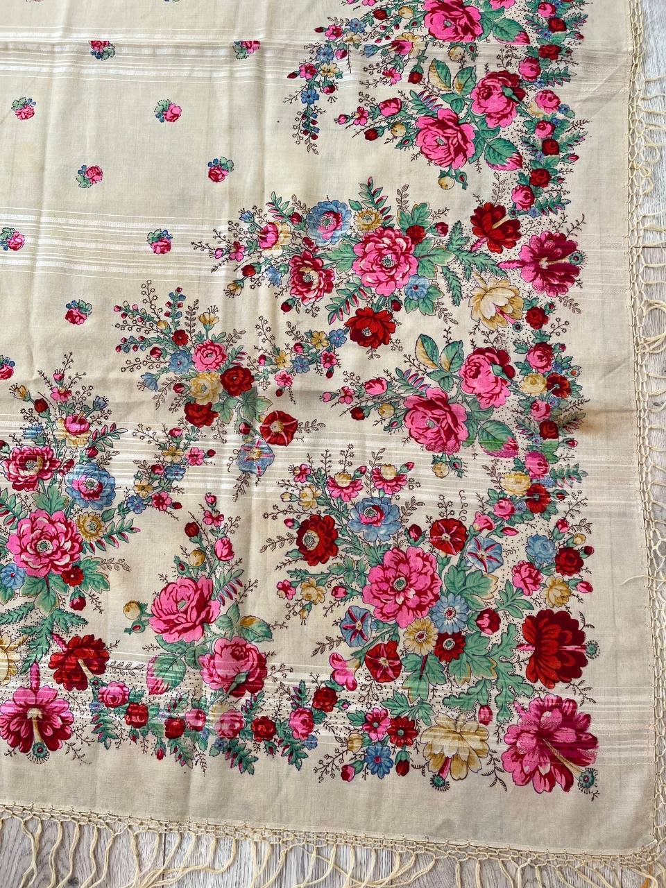 Описание продавца: Дореволюционная шаль с номерным штампом № 92 (конец XIX – начало XX вв.) Такие номера ставились на мануфактурах для учета партий или рисунков в каталогах, что является прямым подтверждением солидного возраста и фабричного происхождения изделия.