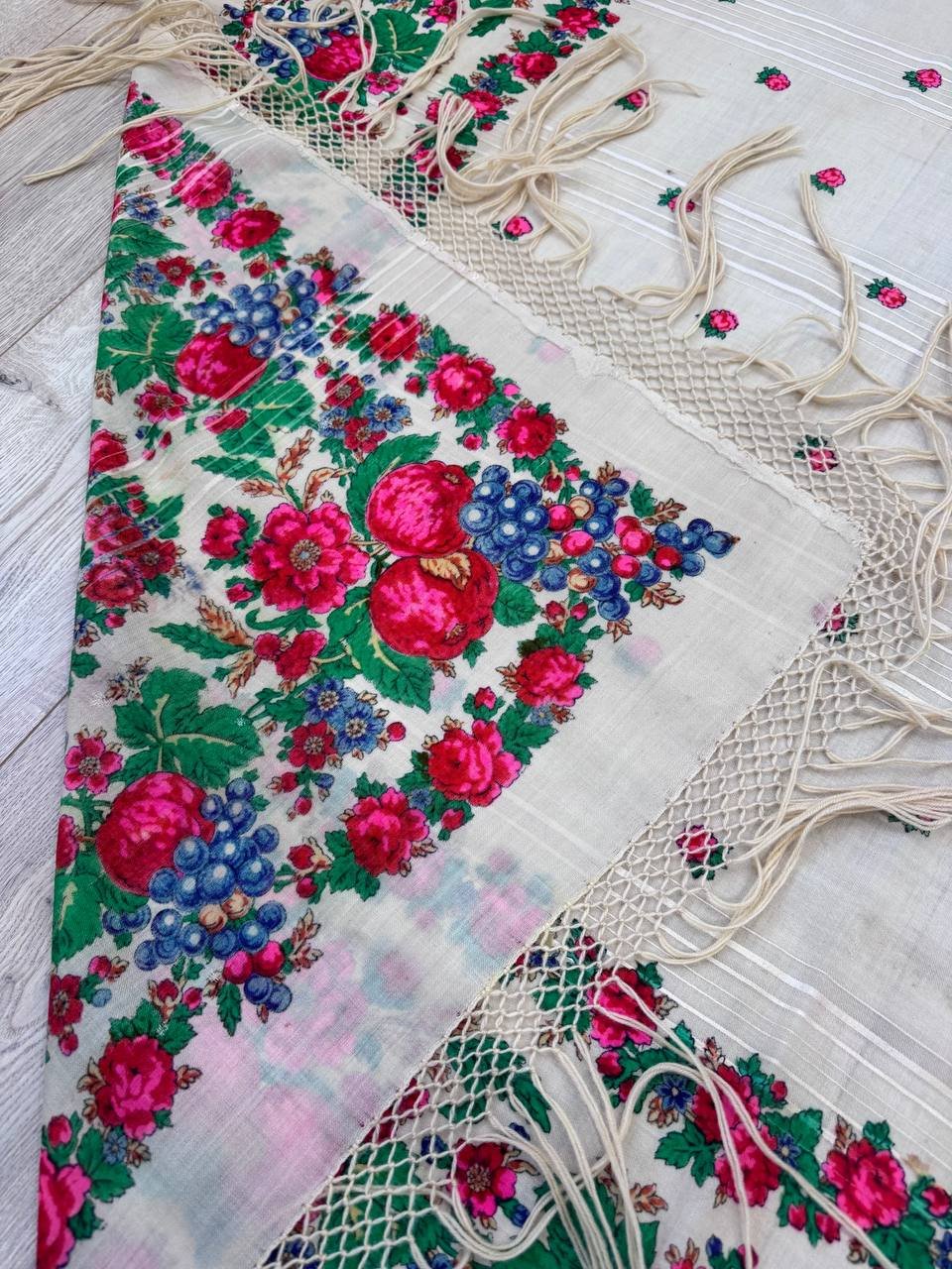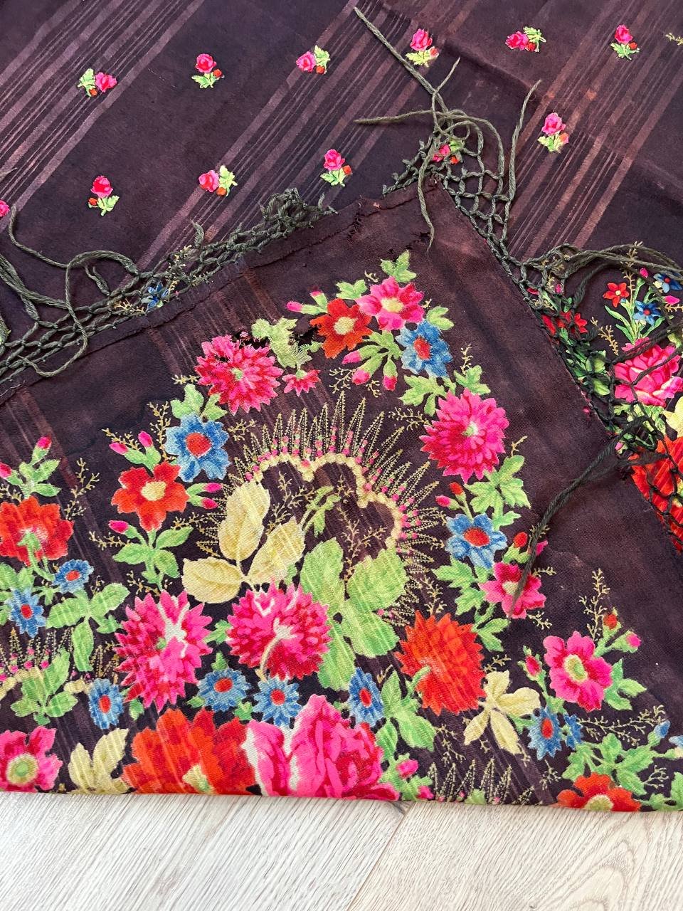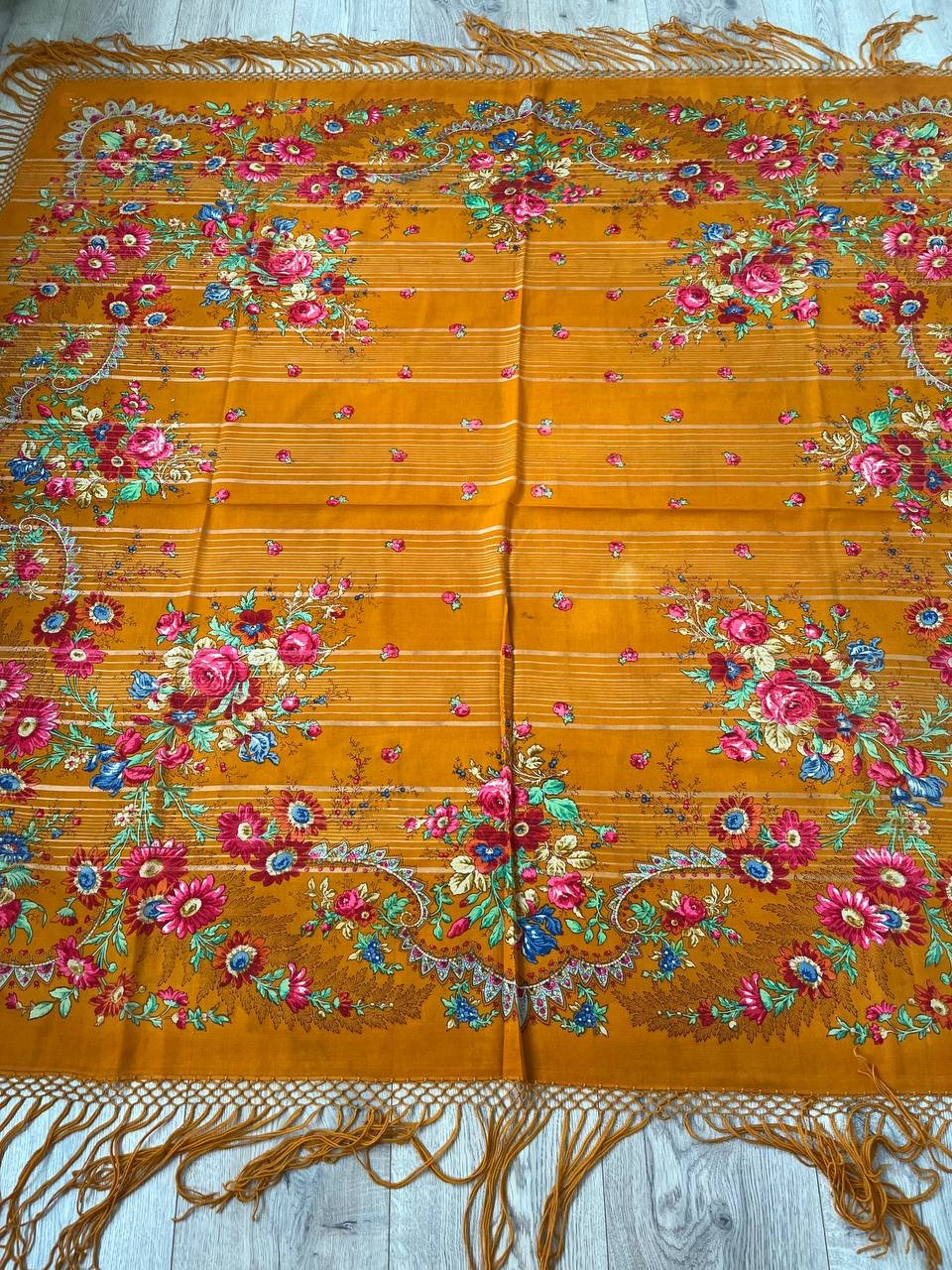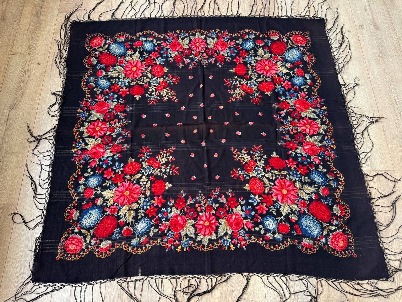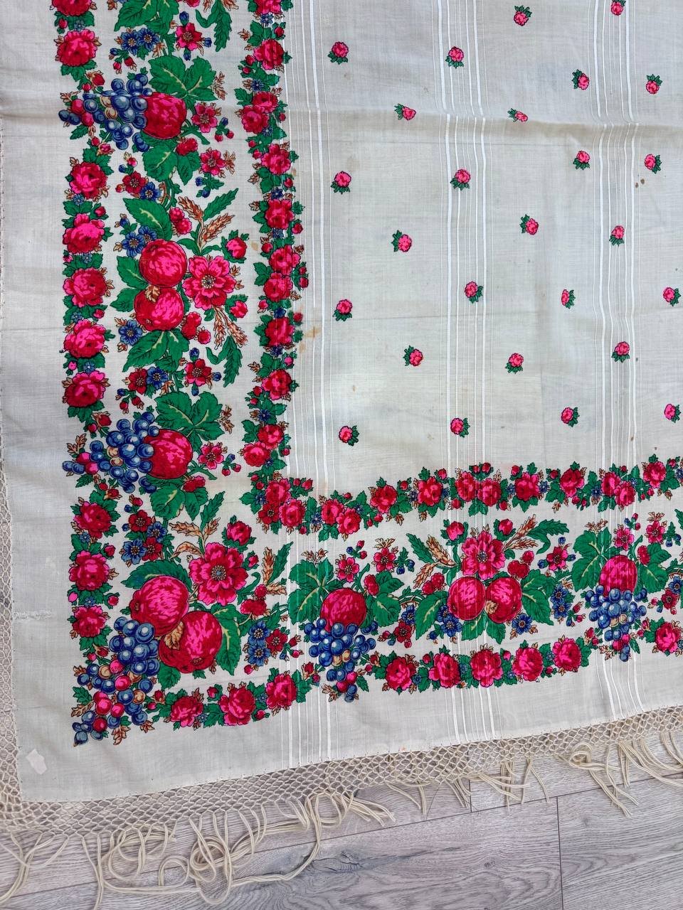 Описание продавца: Дореволюционная шаль с номерным штампом № 92 (конец XIX – начало XX вв.) Такие номера ставились на мануфактурах для учета партий или рисунков в каталогах, что является прямым подтверждением солидного возраста и фабричного происхождения изделия.