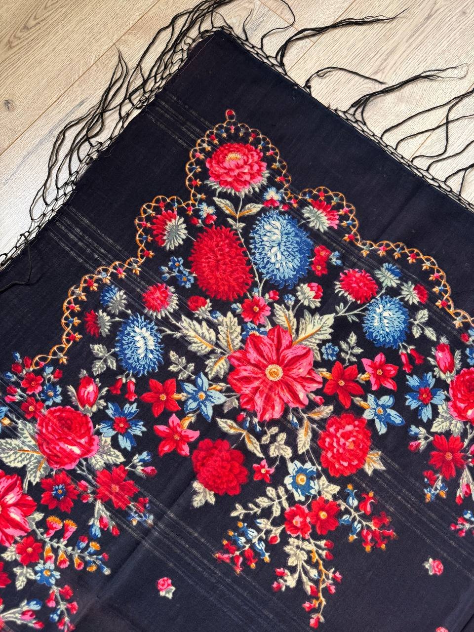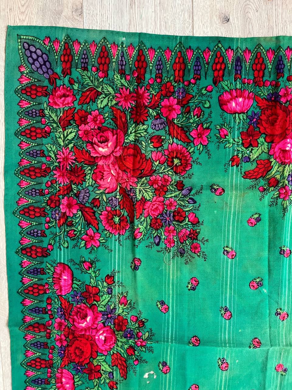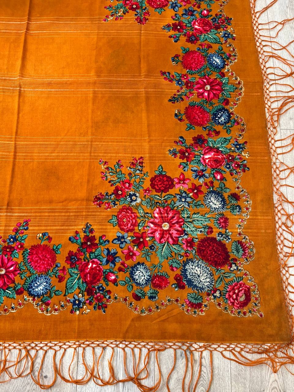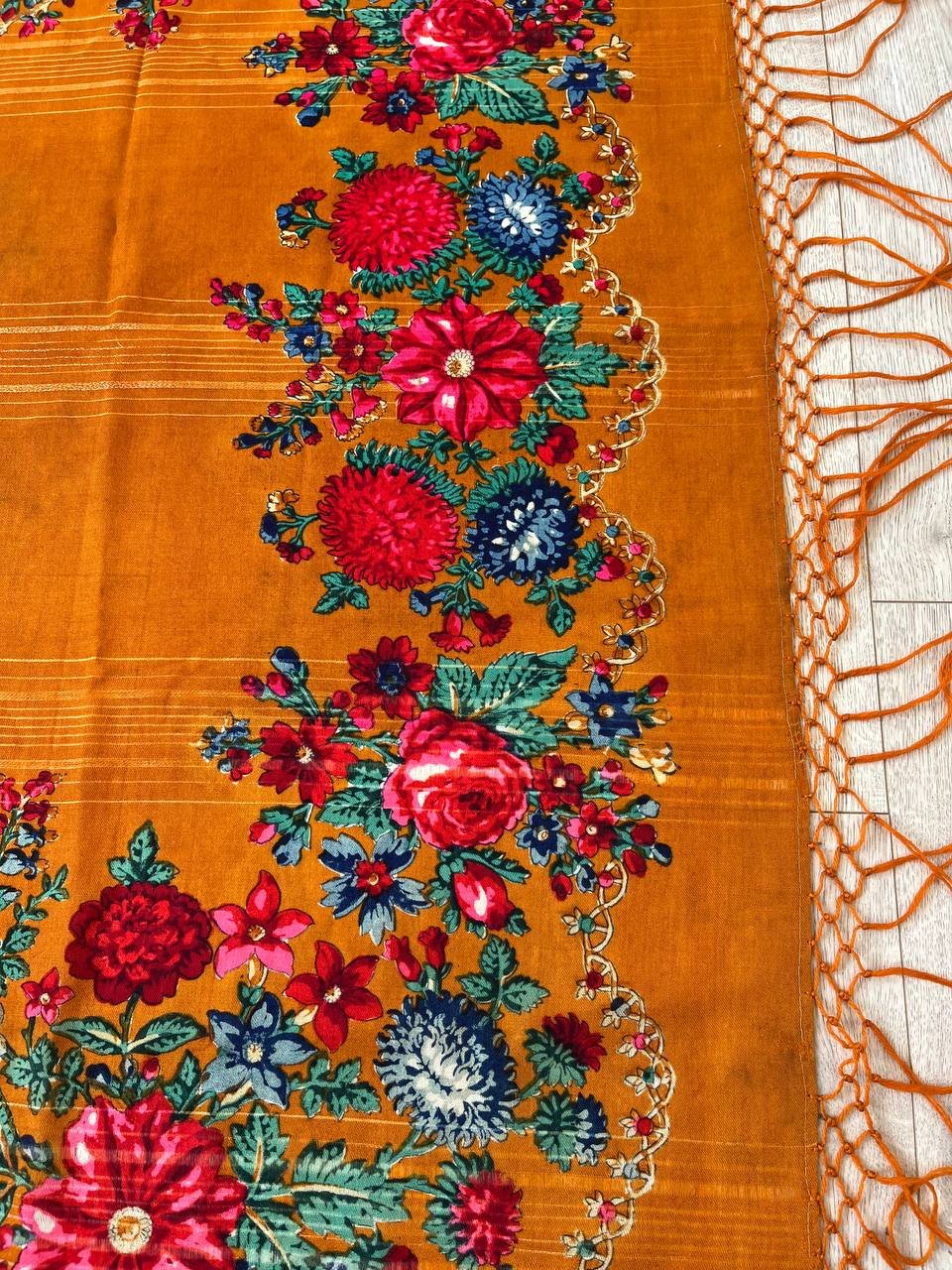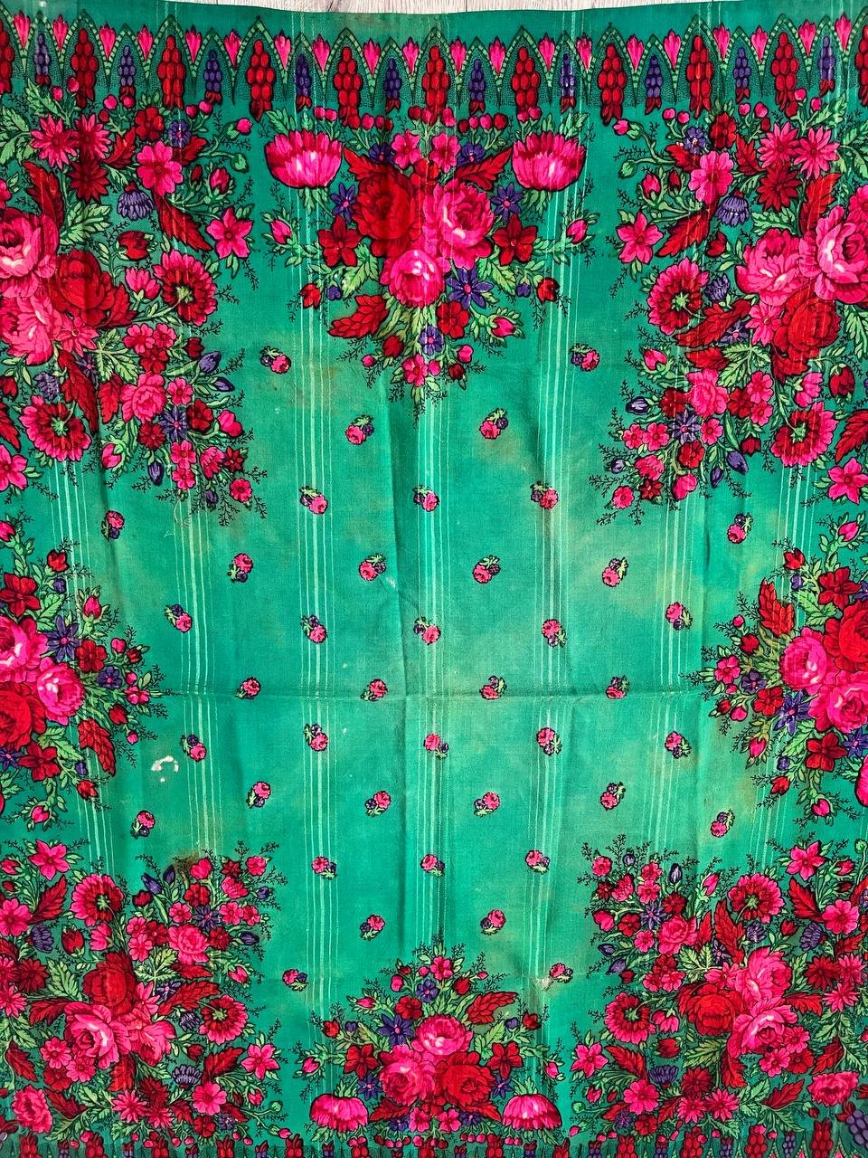 Описание продавца: Дореволюционная шаль с номерным штампом № 92 (конец XIX – начало XX вв.) Такие номера ставились на мануфактурах для учета партий или рисунков в каталогах, что является прямым подтверждением солидного возраста и фабричного происхождения изделия.