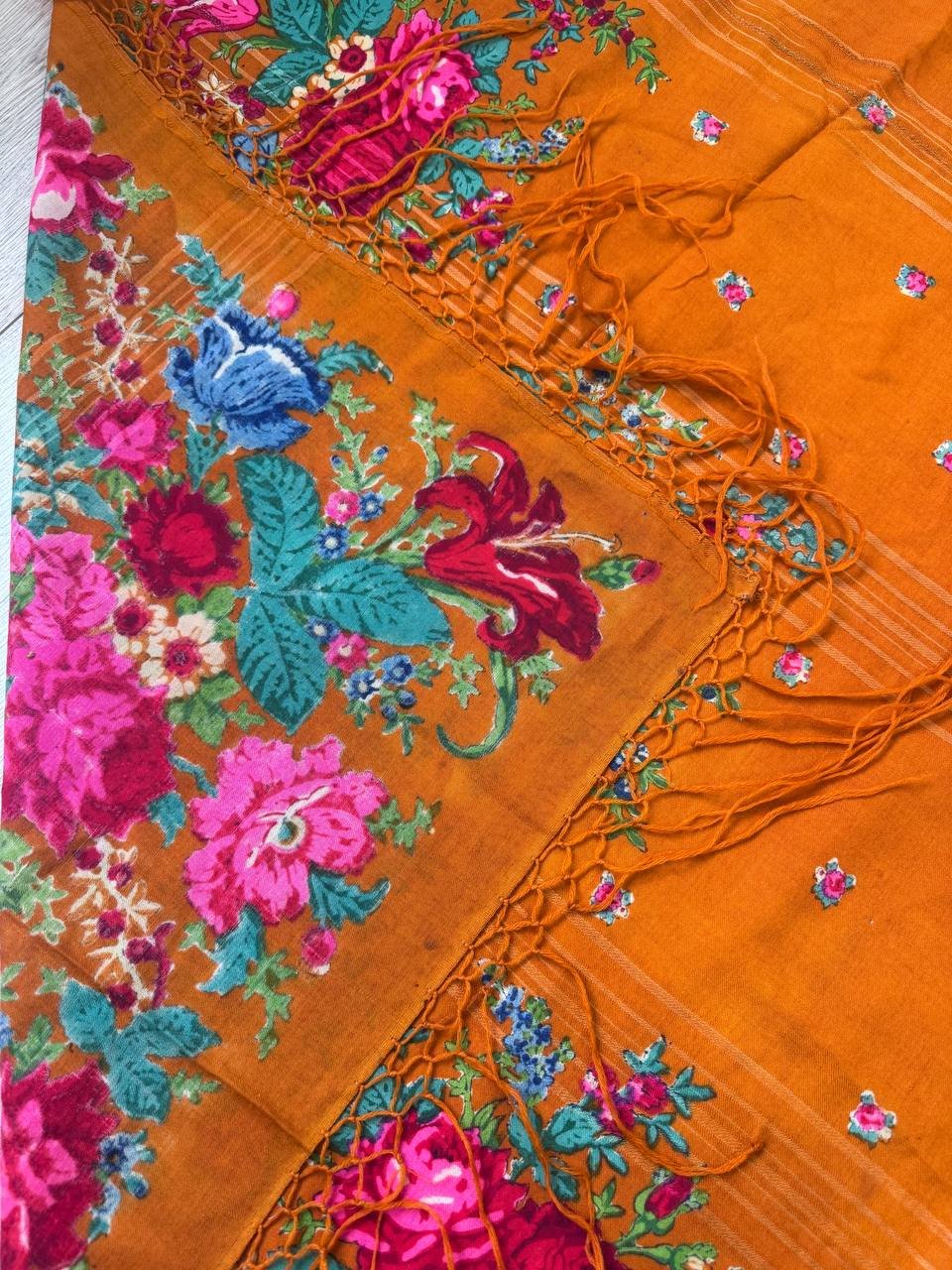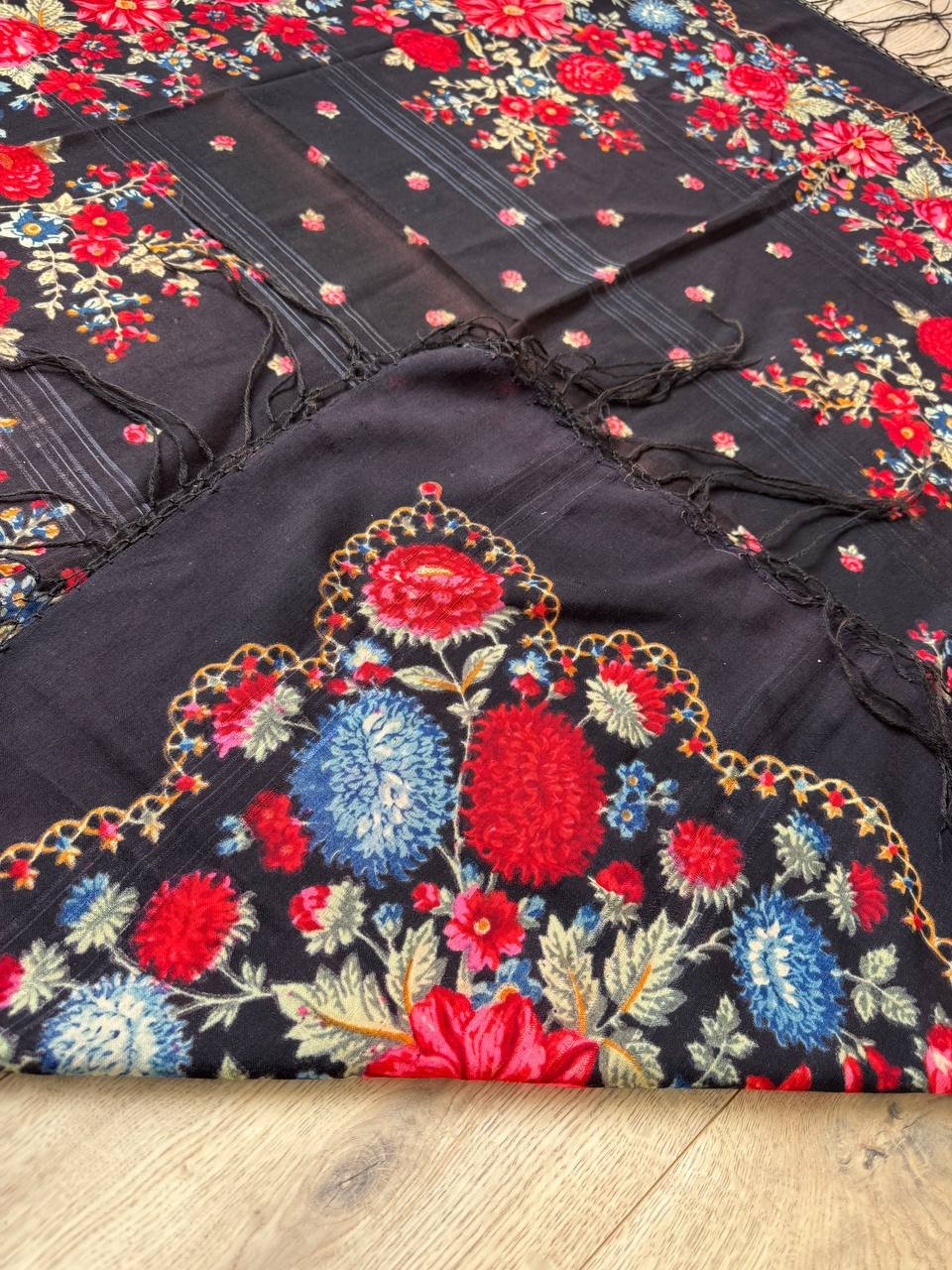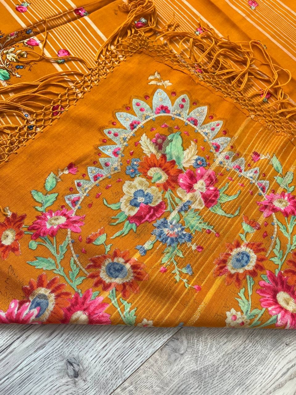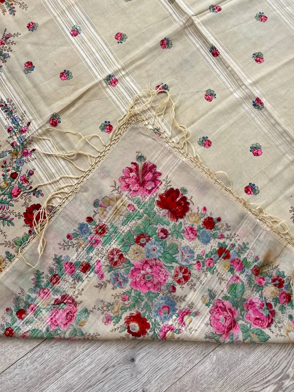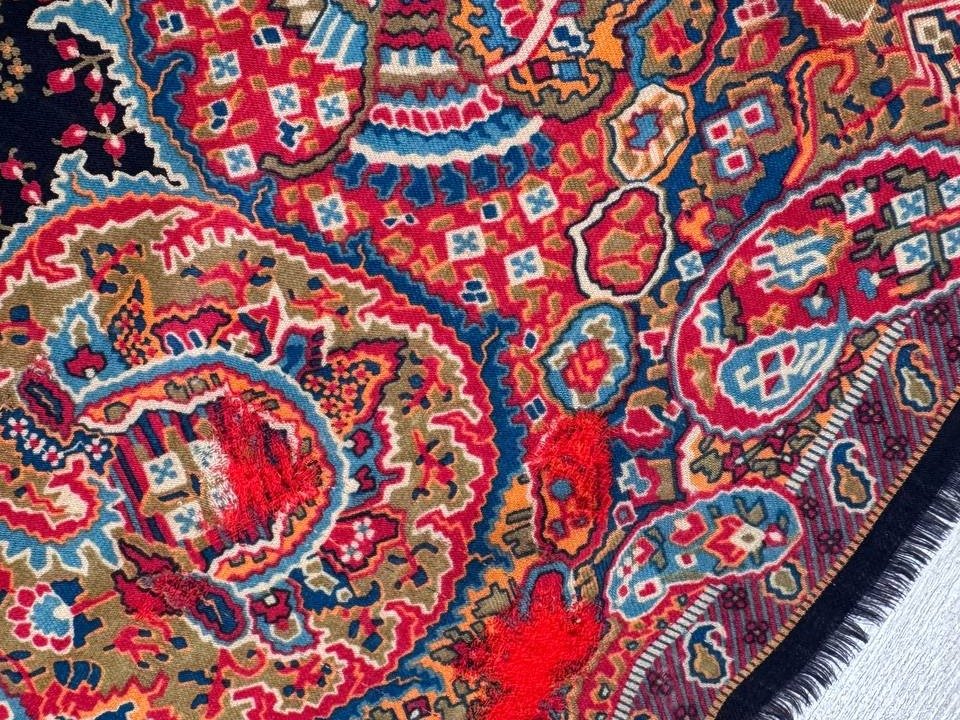 Описание продавца: Дореволюционная шаль с номерным штампом № 92 (конец XIX – начало XX вв.) Такие номера ставились на мануфактурах для учета партий или рисунков в каталогах, что является прямым подтверждением солидного возраста и фабричного происхождения изделия.