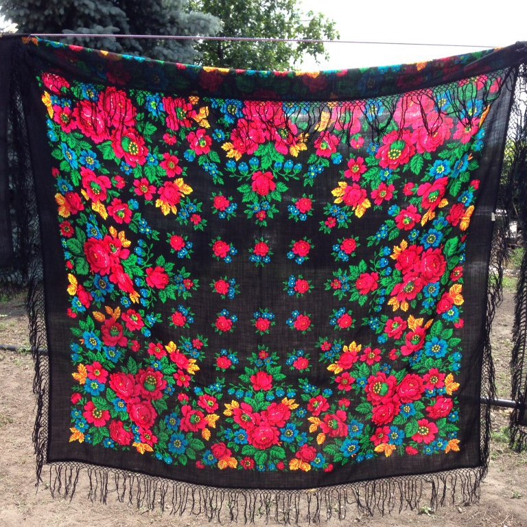 Шаль 145х145, 150х150 с крупными букетами в углах и по кайме