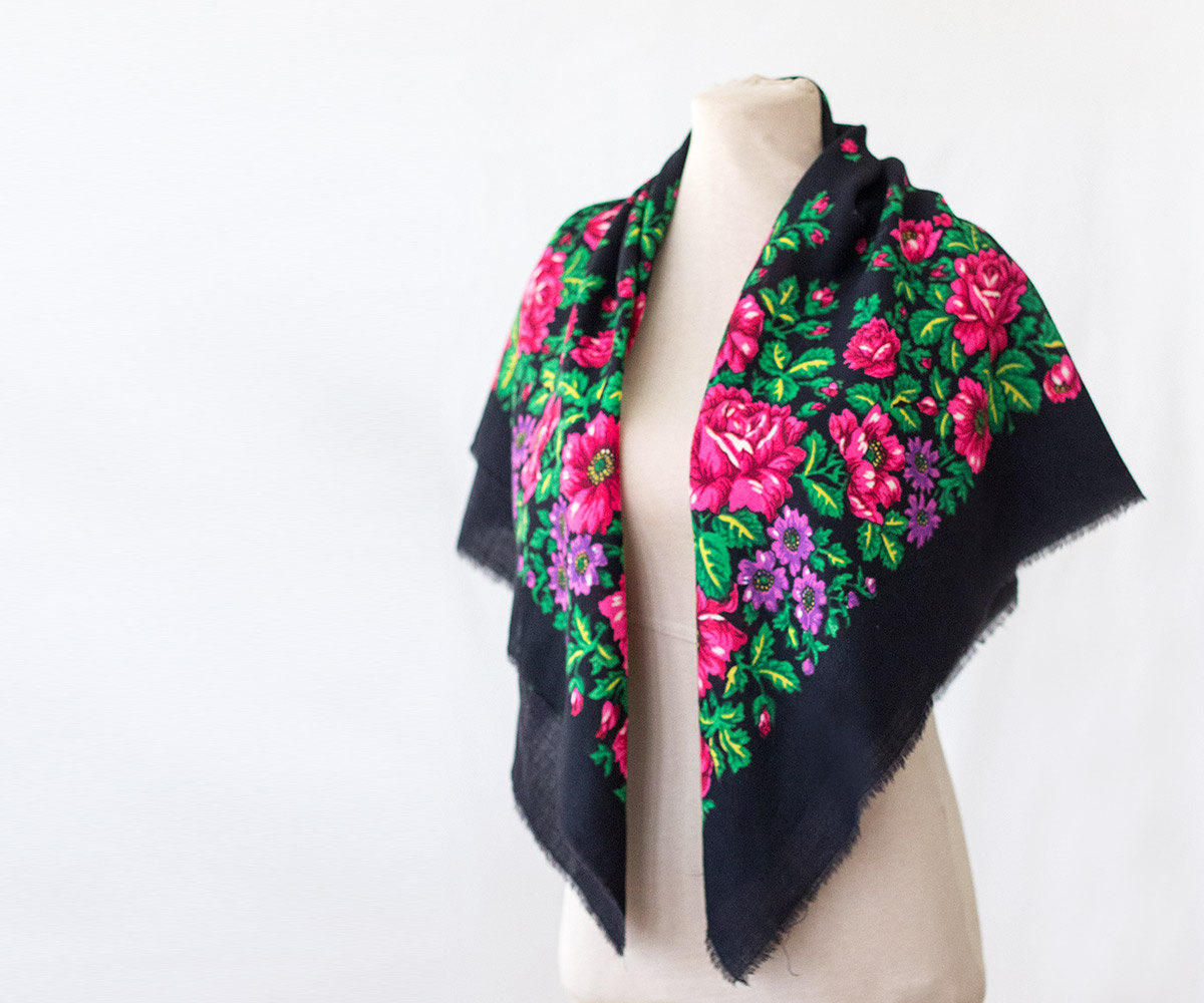 Платок шерстяной с орнаментально-цветочным мотивом неустановленного производителя