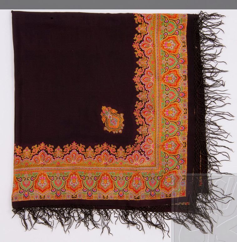 Шаль-покрывало из кашемировой шерсти, 2-я пол. XIX в., неизвестный автор, место производства – Чешские земли