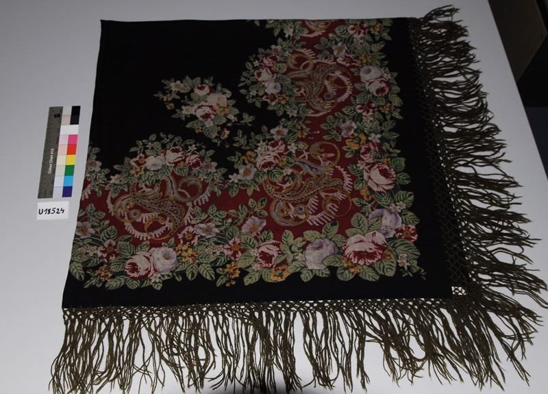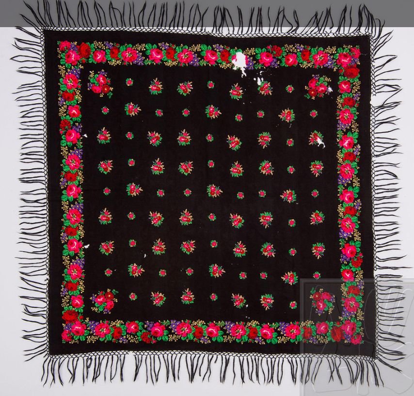 Шаль шерстяная с набивным цветочным рисунком, произведена после середины XIX в., неизвестный автор, место производства – Чешские земли
