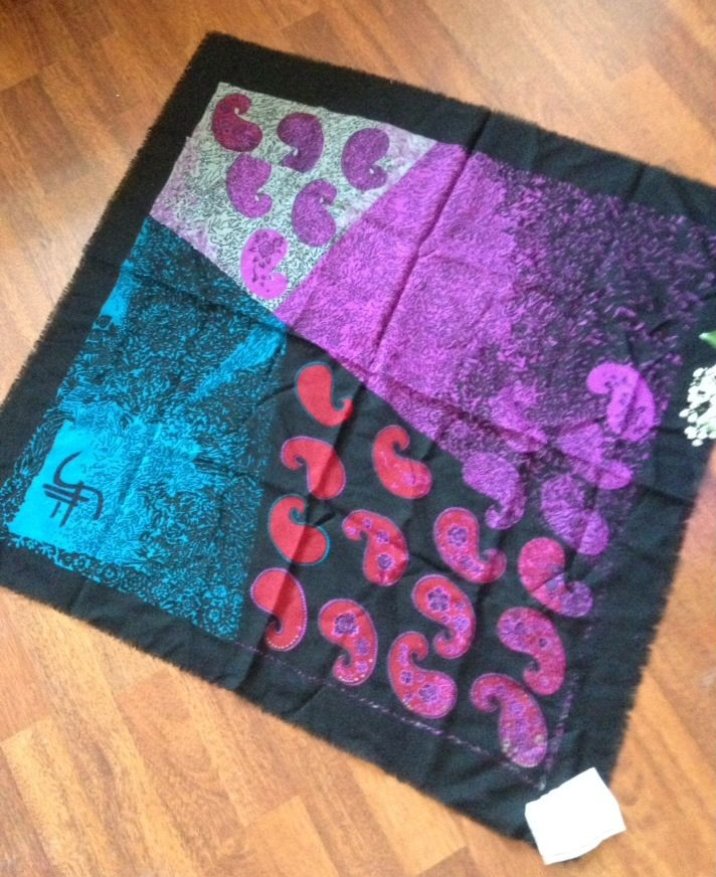 Предлагаю для коллекции рисунков два платка 1990 года размером 82 см. Шерсть, капрон и люрекс. На этикетках видно, как тогда назывался люрекс.