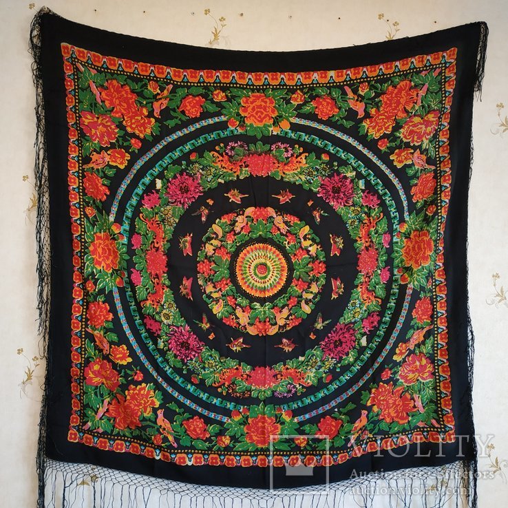 316. КАЙМА РАСПИСНАЯ. Автор Клара Зиновьева. Платок шерстяной 146х146 (снят с производства)