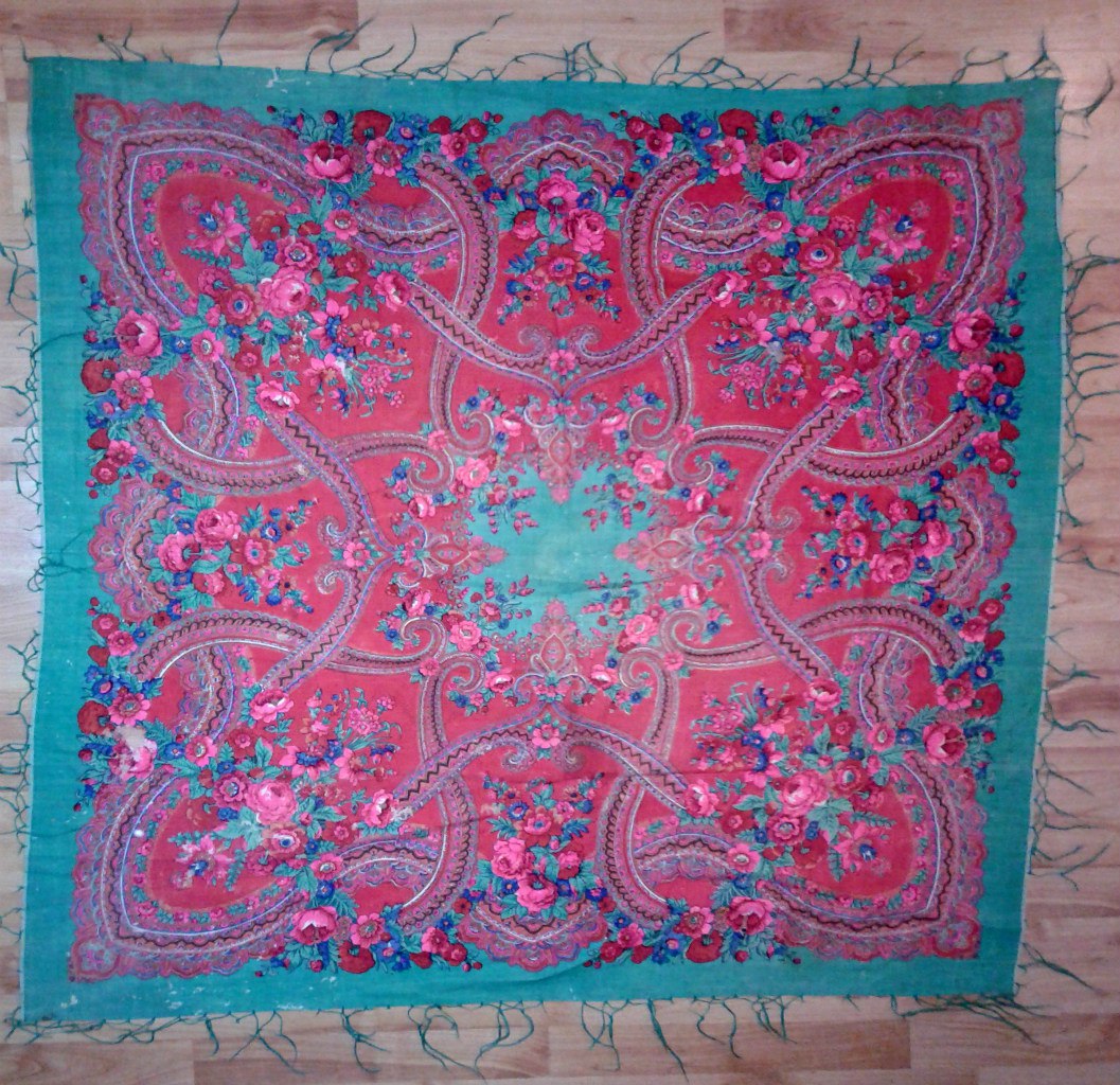 В теории, шаль 1972 года, даже и ручной набойки, едва ли назвали бы старинной. Но вот интересно, каких времен шали прилично называть старинными?