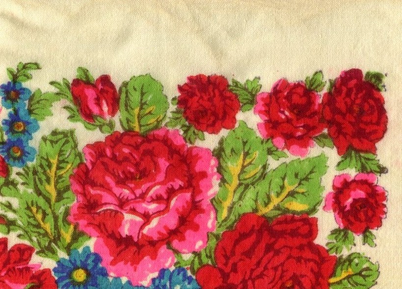 Розанчики в среднике очень похожи на печать им подобных на предыдущем платке по рисунку Евгения Штыхина:
