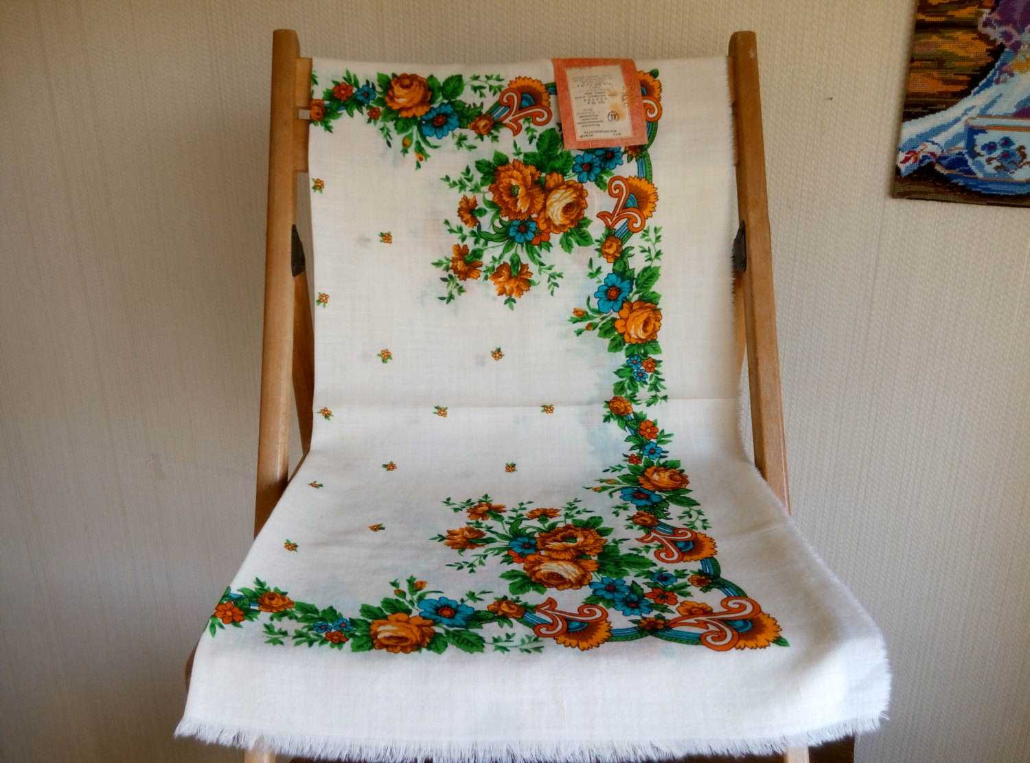 Другой платочек с таким-же рисунком и колоритом Читала комментарии продавцов, что платок украинского производства. Рисунок 80-х годов