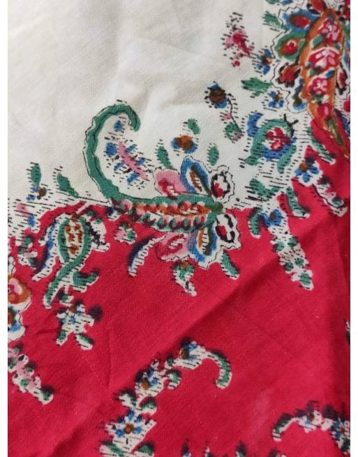 Старинная шаль из тонкой мериносовой шерсти, набойка, середина XIX века