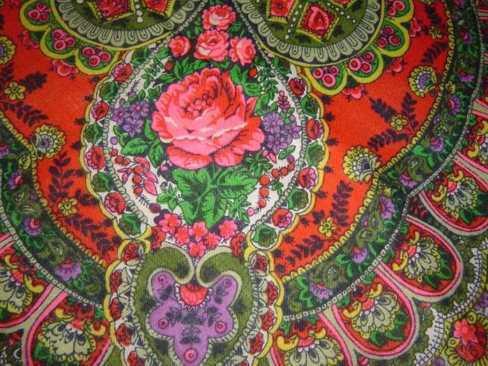 Так навскидку для себя определила главный "научный" методтыка. Платки только с ручной набойкой в советское время бытовали с 1917 г. по 1954 г. Значит, их нужно отделить от смежных групп - "лабзинских" платков (легко), и платков с фотофильмпечатью, вначале ручной. Вот Вам к примеру, шаль Леночка Клары Зиновьевой 1961 г. Очевидно, что ее рисунок изначально создавался под шаблоны.