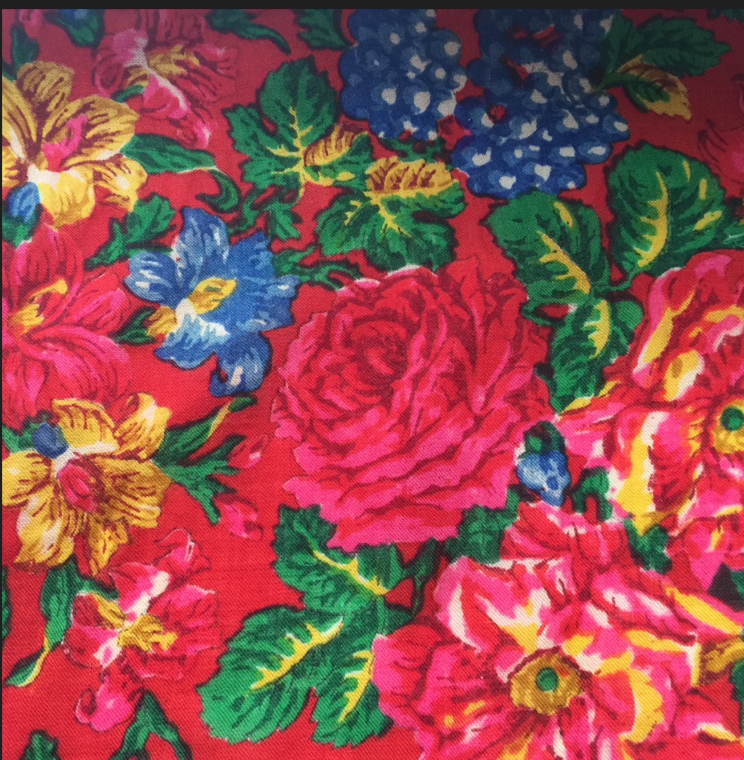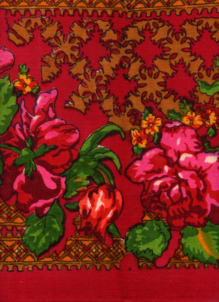 Появилось у меня покрывало ручной набойки. Давно хотелось иметь такую интересную вещь. Покрывалами на ППМ называют скатерти, т.е. покрывало на стол. Сейчас перемерила своё покрывало - оно оказалось размером 186 на 143, т.е. имеет прямоугольную форму. Шерстяное. Ткань удивительно качественная, шелковистая, как на хорошем шерстяном платке прошлых лет. Не палатка, и не марля. Края покрывала оформлены подрубкой. С изнанки в подгибку пристрочен белый тканевый ярлычок, но на нем ничего не напечатано (или стерлось от времени).