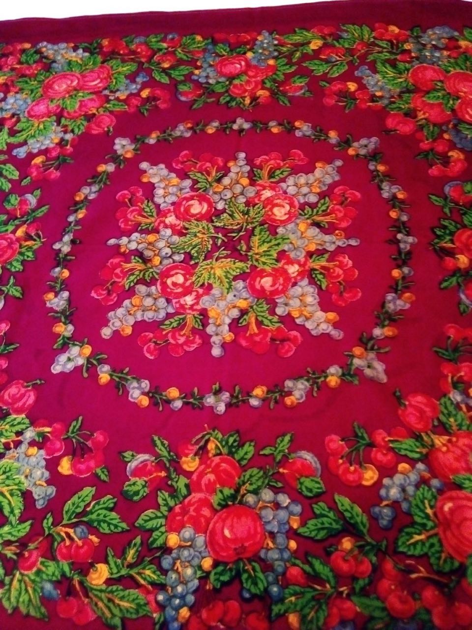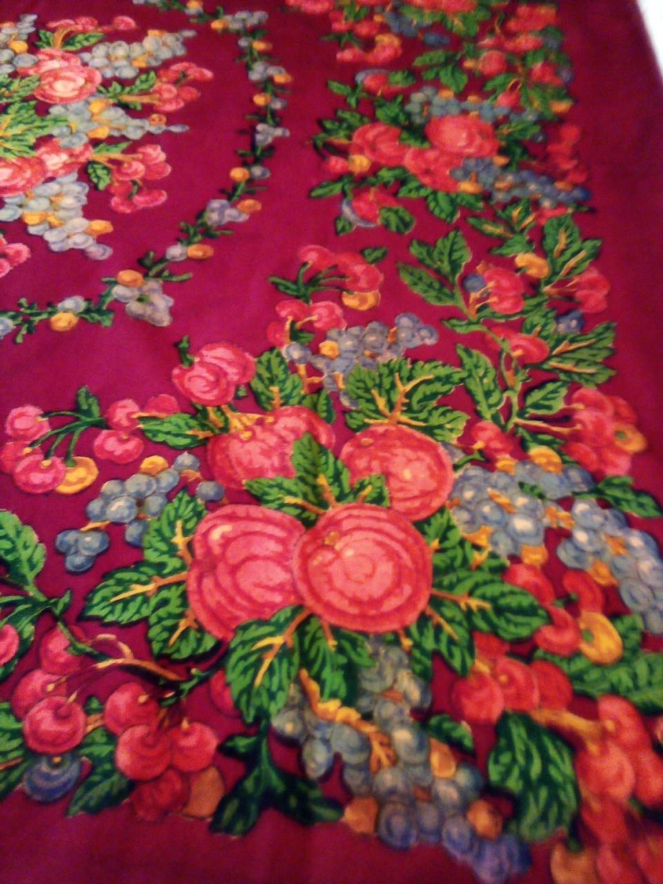 Вопрос, могла ли шаль Русская красавица быть еще и в таком варианте, или ее уже додумали малые республики, на форуме попадалась шаль с пустым и заполненным средником, не помню автора, точно Павловопассадский выпускали их в обоих вариантах. Бахрома у платка такая же как на фото с форума тонкая.